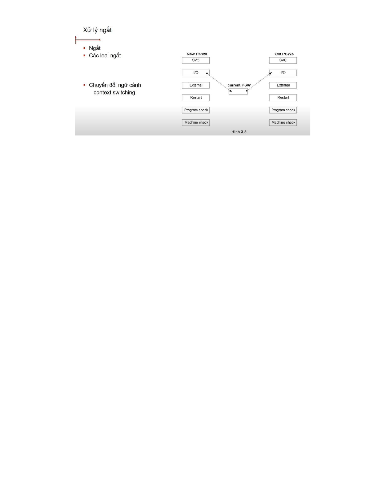 + Sau khi chuyển đổi thì current PSW chứa địa chỉ của chương trình xử lý ngắt và