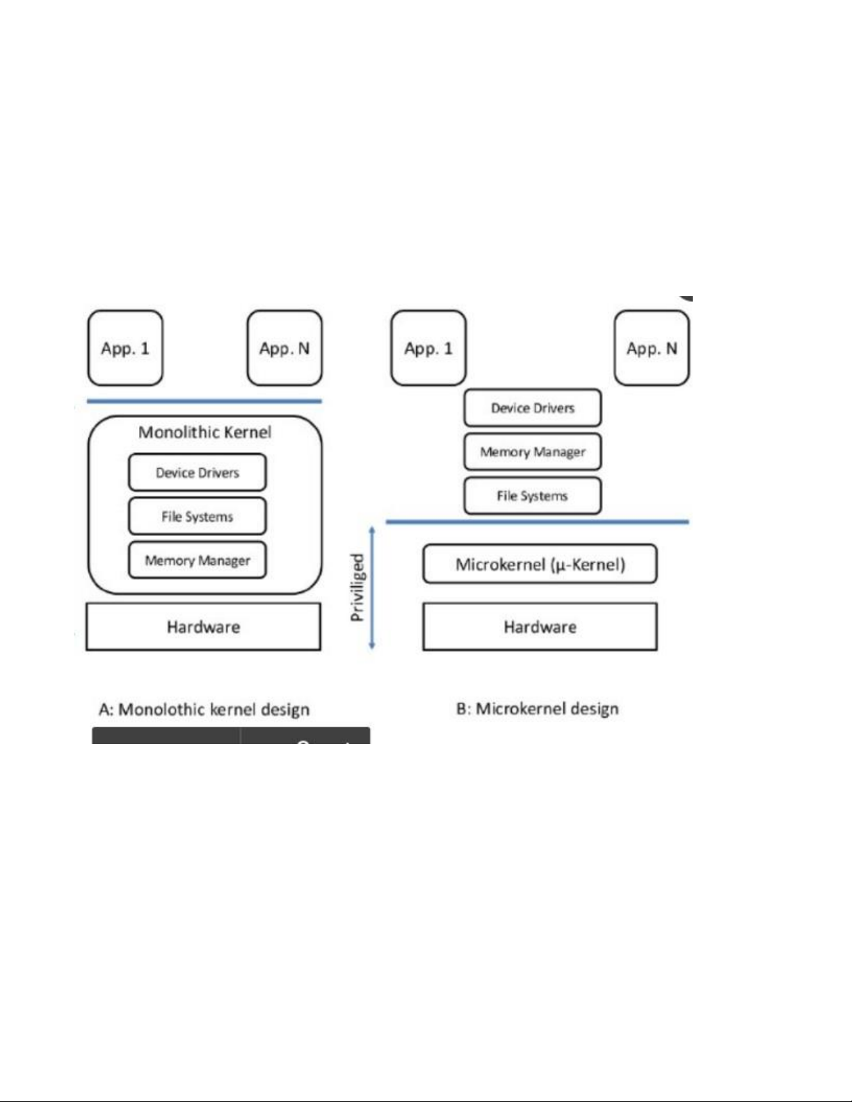 5) Hạt nhân của hệ điều hành, Hai mô hình kiến trúc hệ điều hành: monolithic và micro kernel