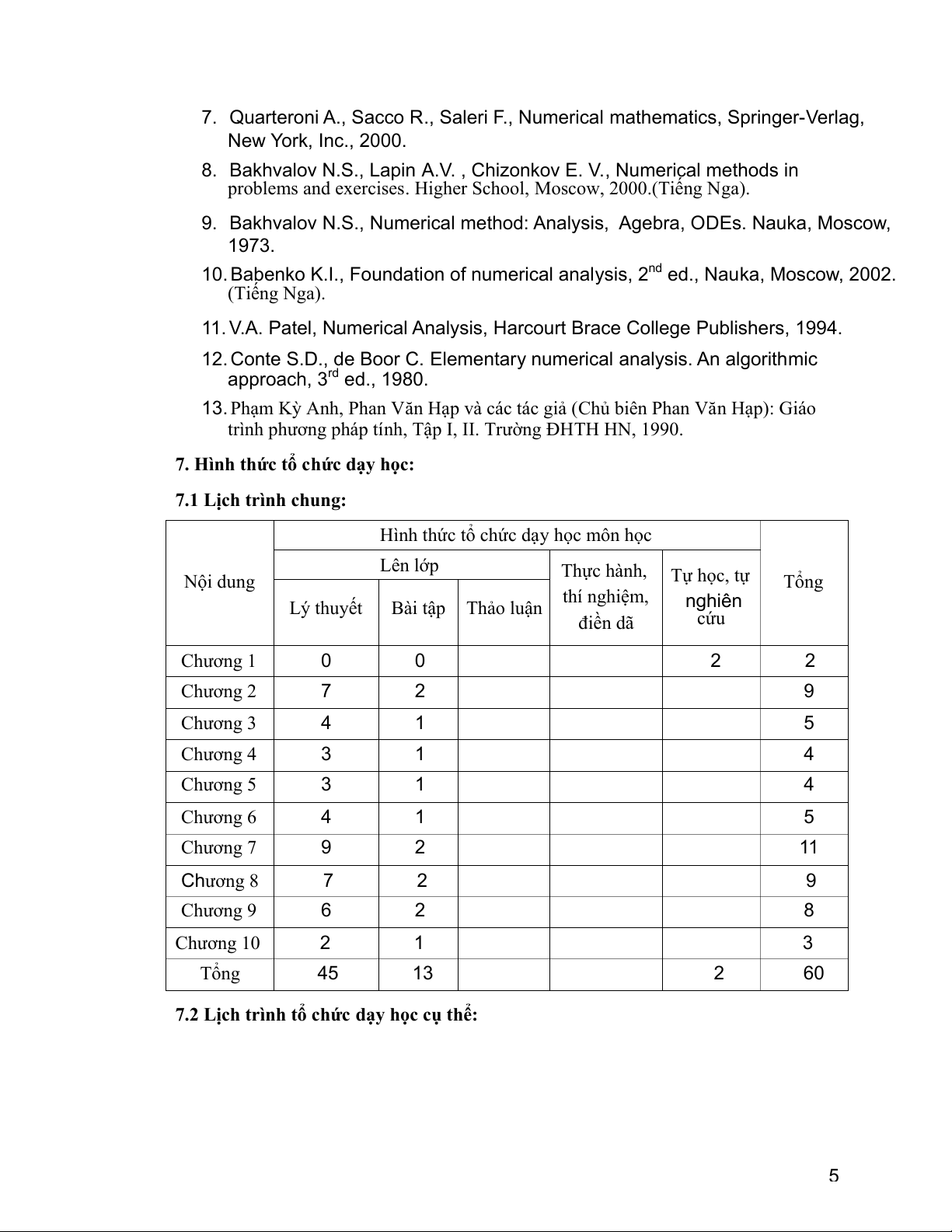 - Giờ lý thuyết và bài tập có thể tiến hành xen kẽ.