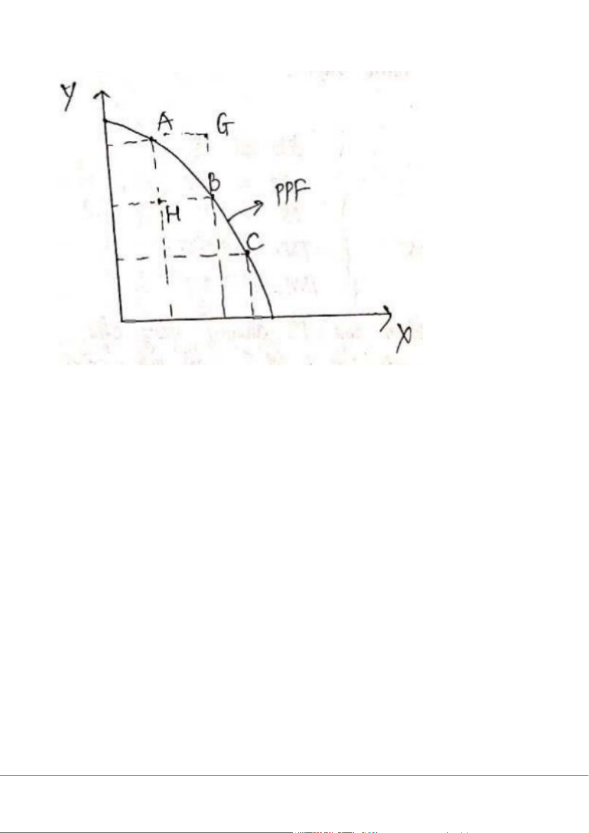 + Điểm nằm trên đường PPF là điểm SX có hiệu quÁ vì đã sd hế t nguồn lực.