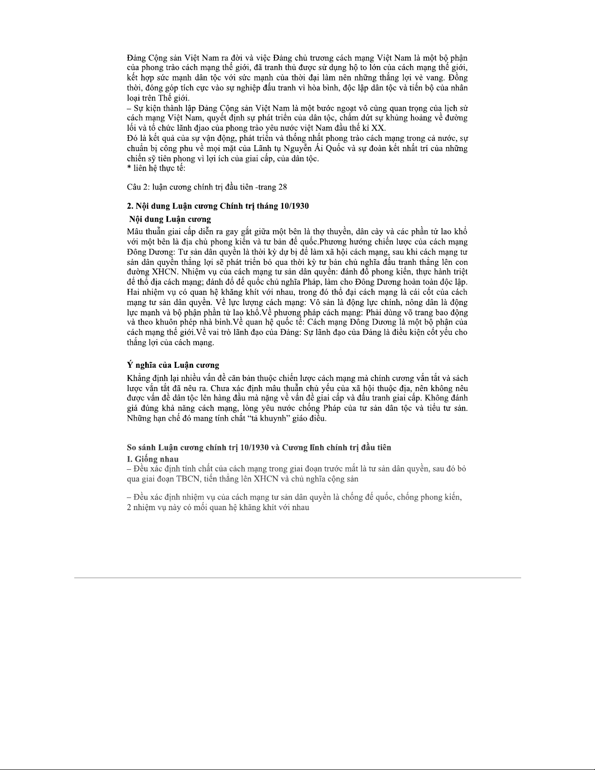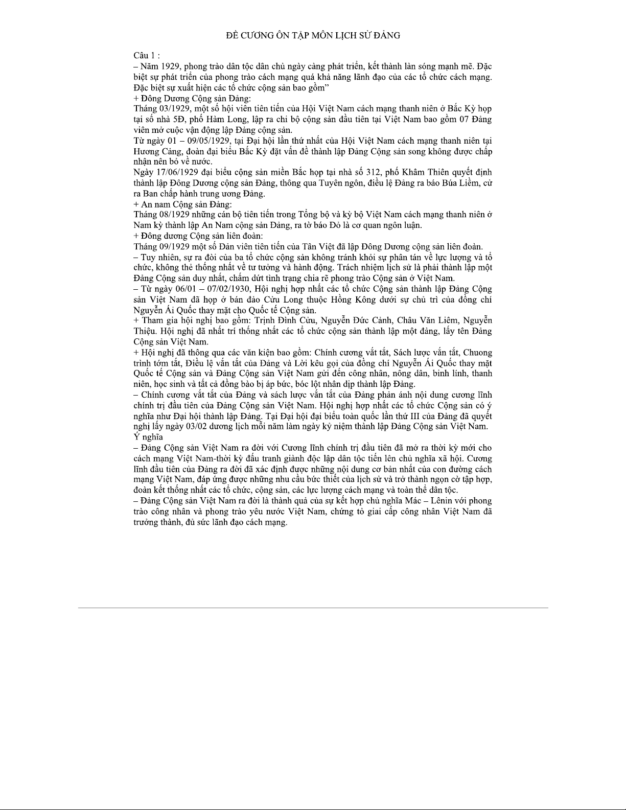 ĐỀ CƯƠNG ÔN TẬP MÔN LỊCH SỬ ĐẢNG: TỔNG QUAN VỀ ĐẢNG CỘNG SẢN VIỆT NAM