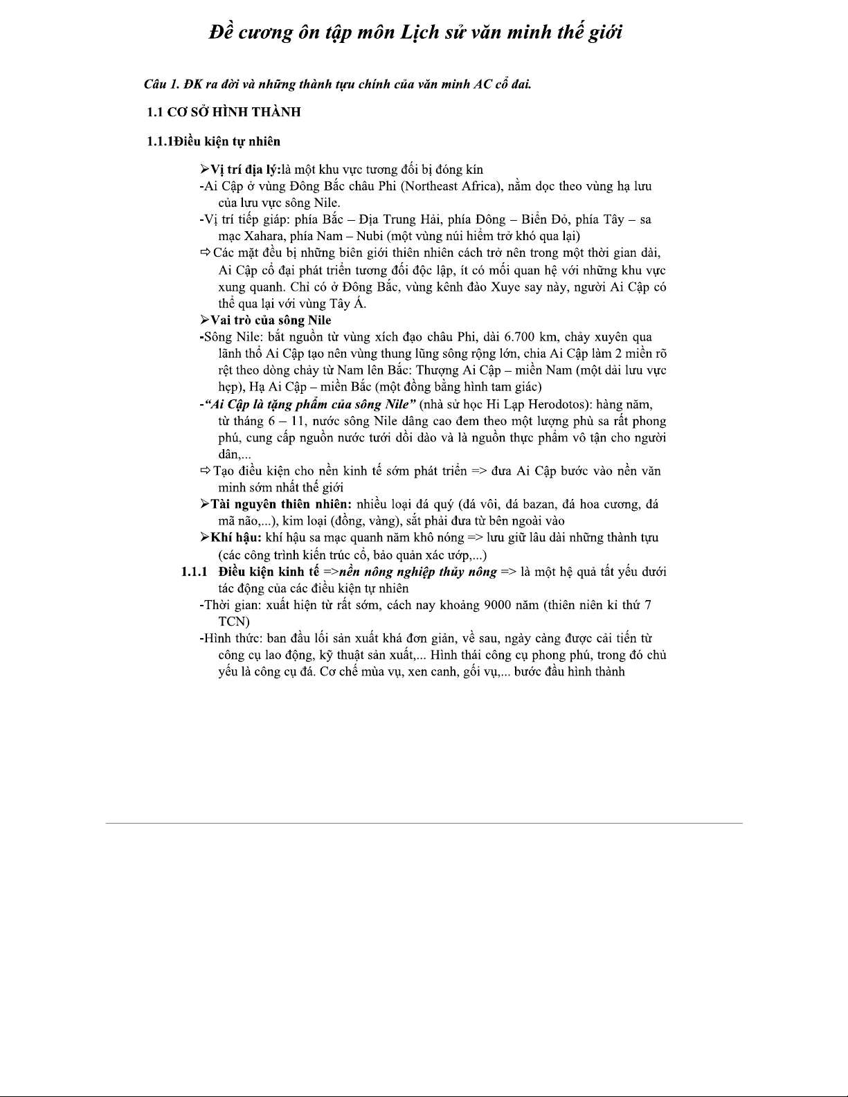 Đề cương ôn tập môn Lịch sử văn minh thế giới 1