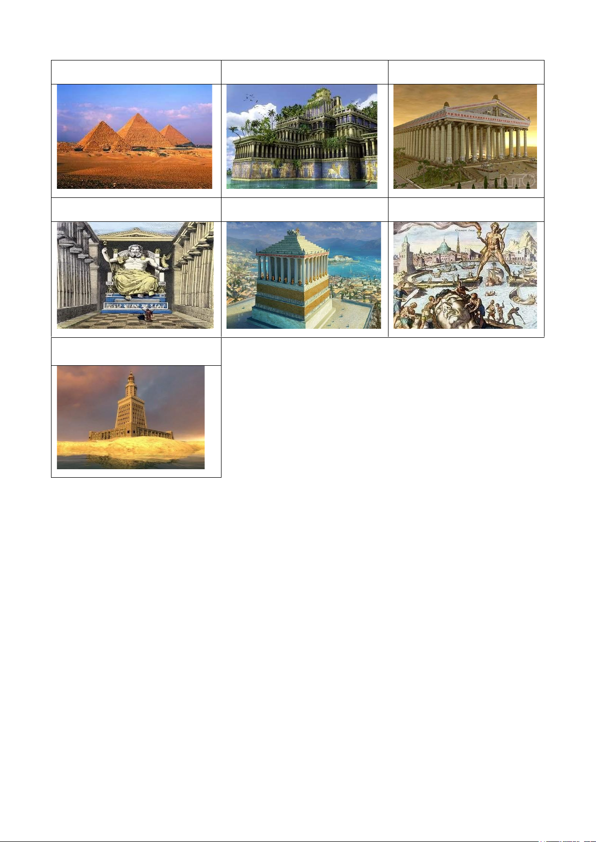 I.2: Qua những hình ảnh dưới đây hãy cho biết tên 7 kỳ quan của thế giới cổ đại. Qua