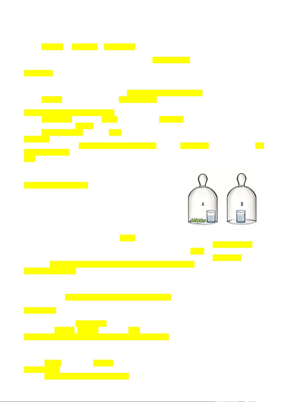 chuông thuỷ tinh A, B. Mẫu vật được dùng thí nghiệm trong chuông A là