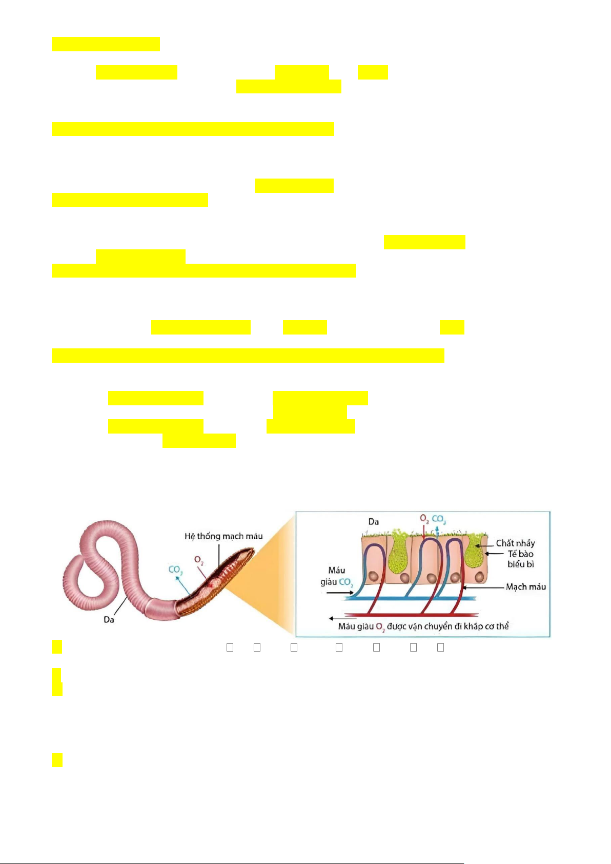 Câu 1. Hình sau đây mô tả quá trình hô hấp ở Giun đất. Qua quá trình hô hấp ở động vật và hình minh