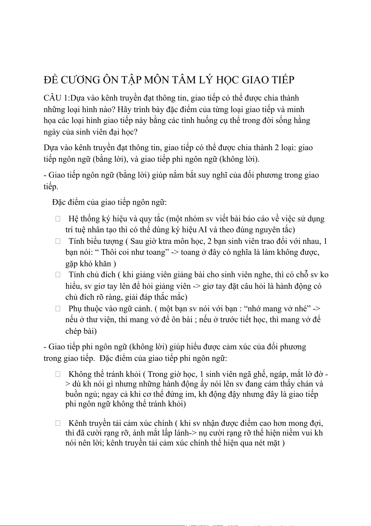 ĐỀ CƯƠNG ÔN TẬP MÔN TÂM LÝ HỌC GIAO TIẾP