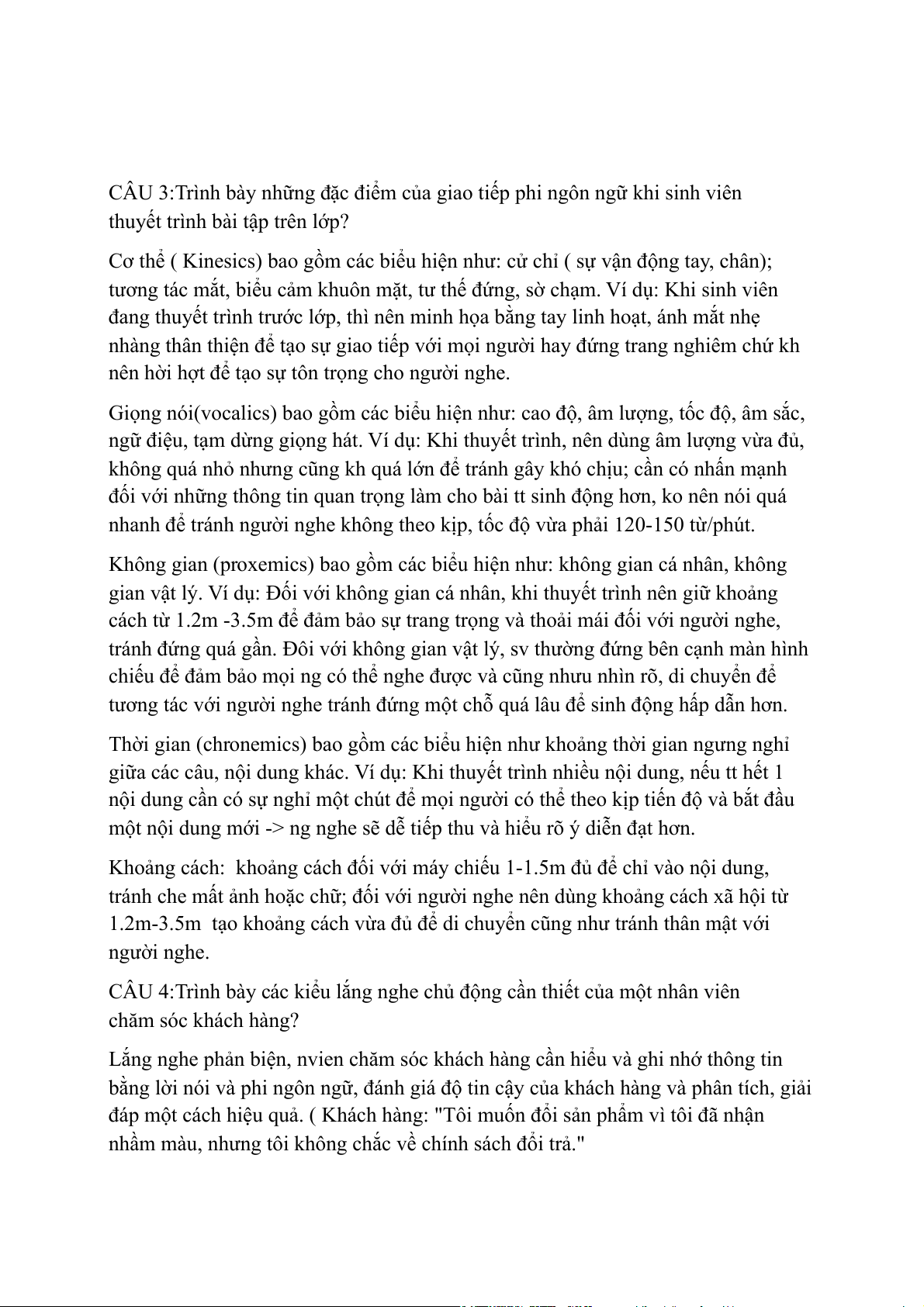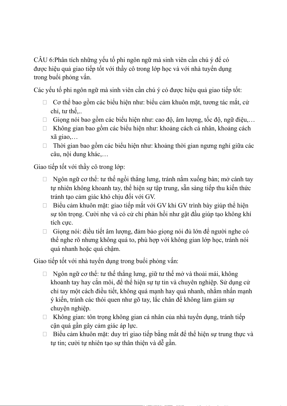 CÂU 3:Trình bày những đặc điểm của giao tiếp phi ngôn ngữ khi sinh viên