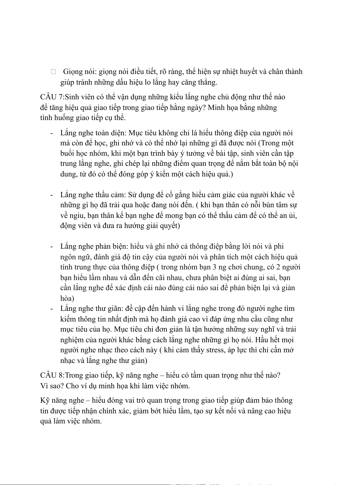 CÂU 7:Sinh viên có thể vận dụng những kiểu lắng nghe chủ động như thế nào