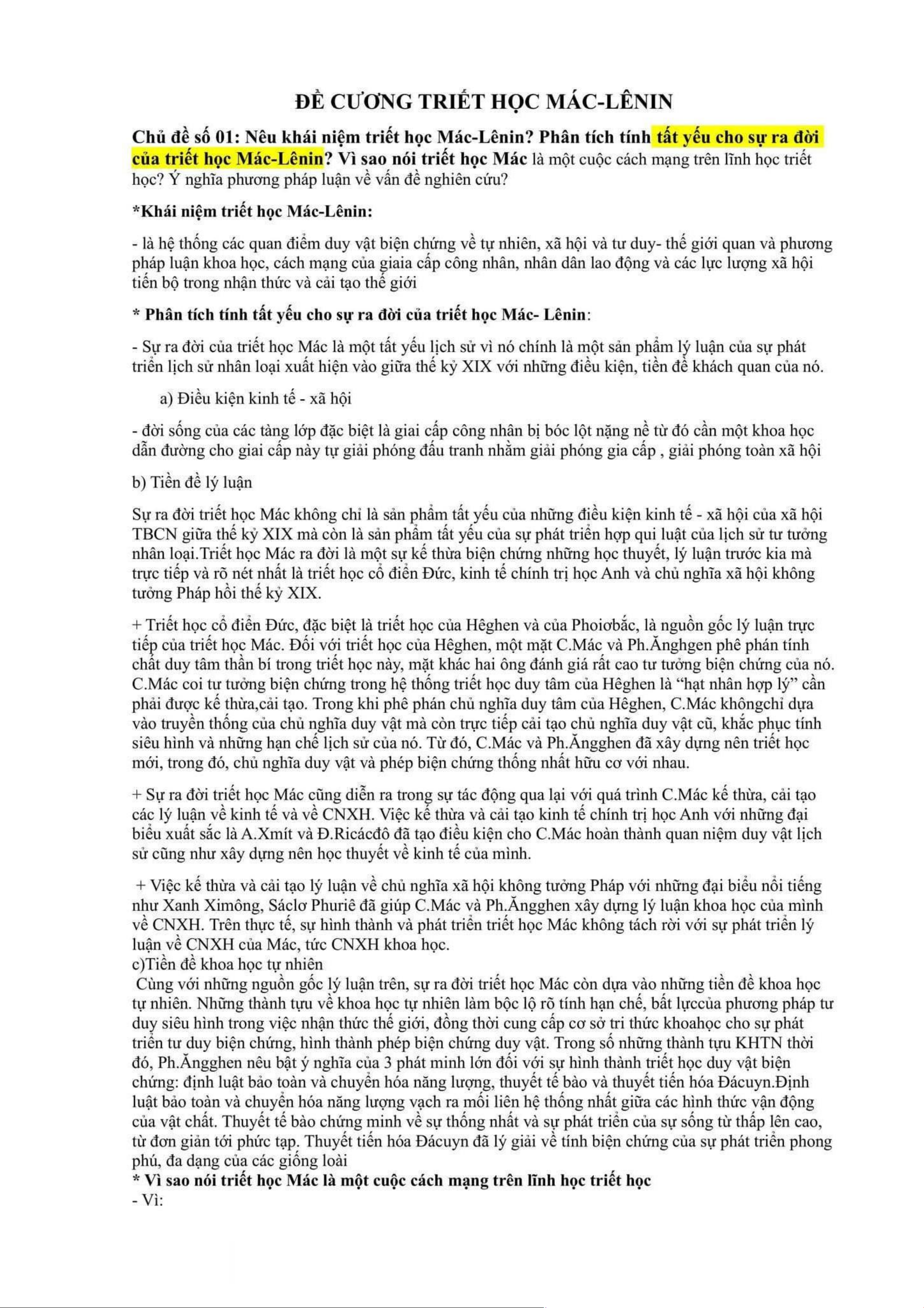 Đề cương ôn thi kết thúc học phần môn triết học Mác – Lê nin–Trường Đại học kinh tế thành phố Hồ Chí Minh
