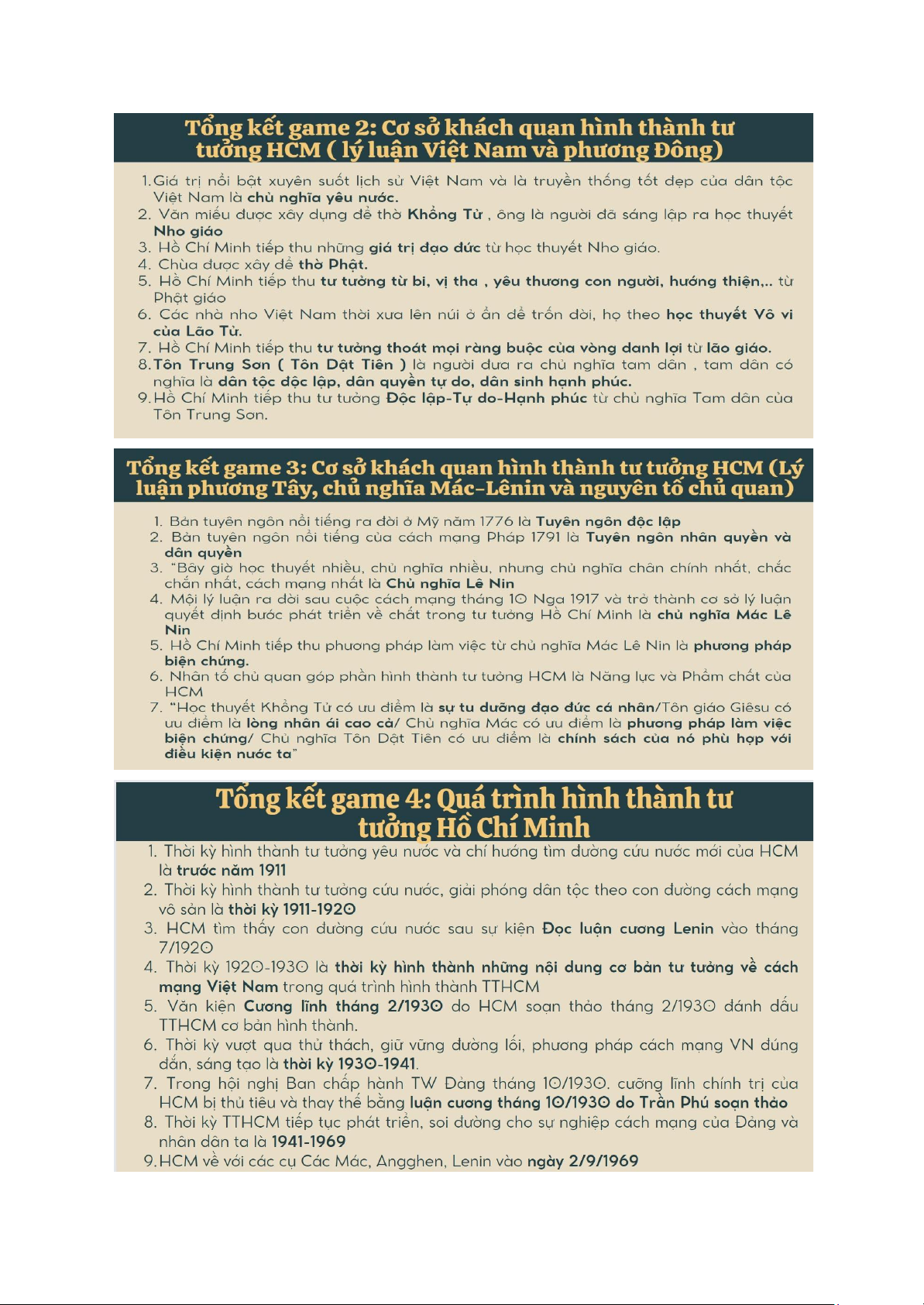 Gợi ý: Từ nguồn trong giáo trình -> tìm tác phẩm nào bác viết, viết vào năm nào, tóm tắt nội dung tác