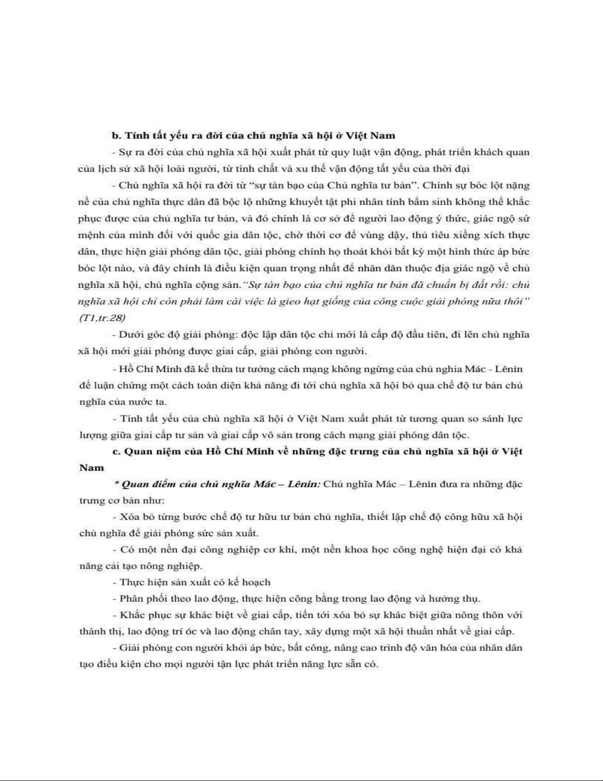 1. Quan điểm của Hồ Chí Minh về tính tất yếu, đặc trưng bản chất; các