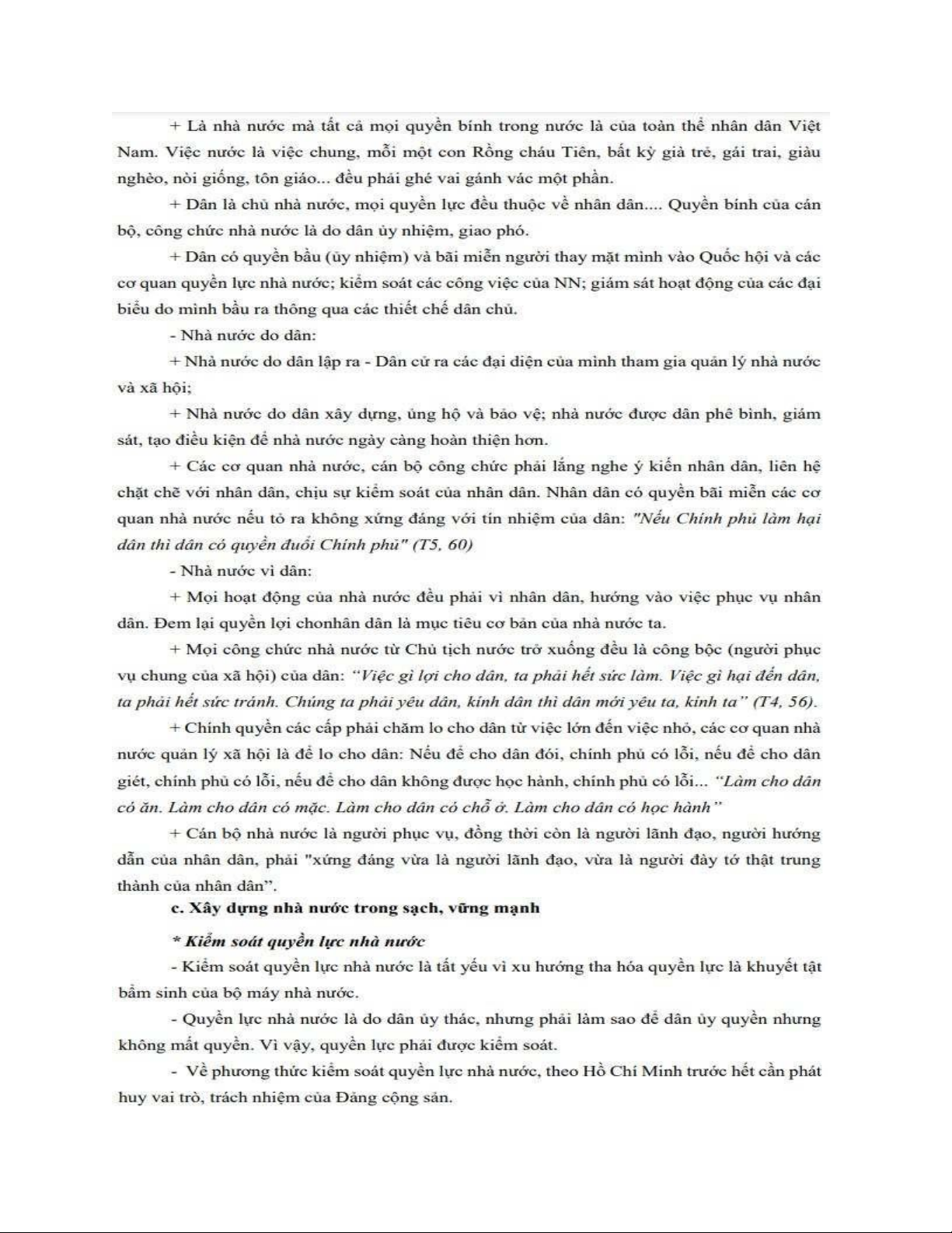 dân; các biện pháp xây dựng nhà nước trong sạch vững mạnh và sự vận