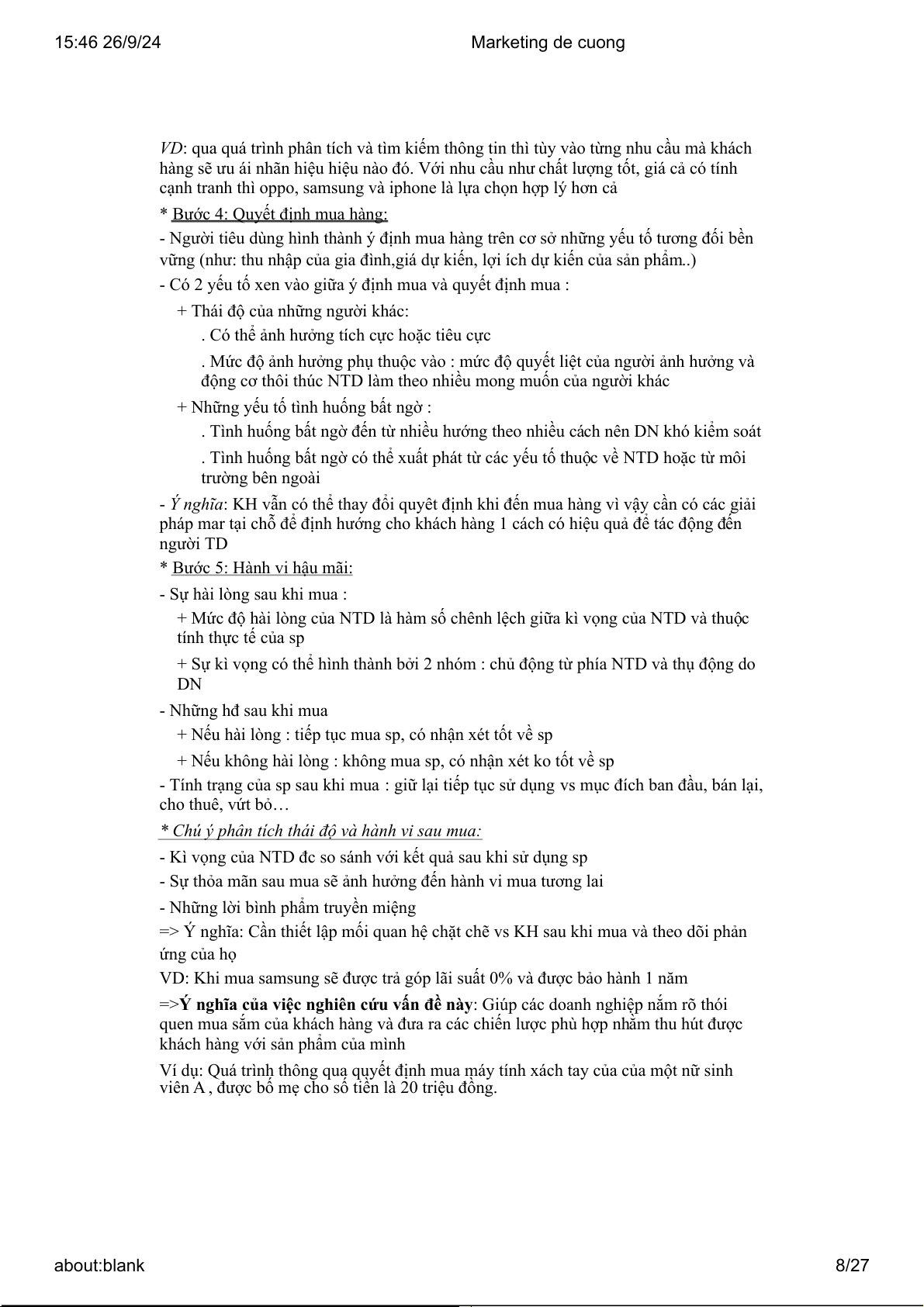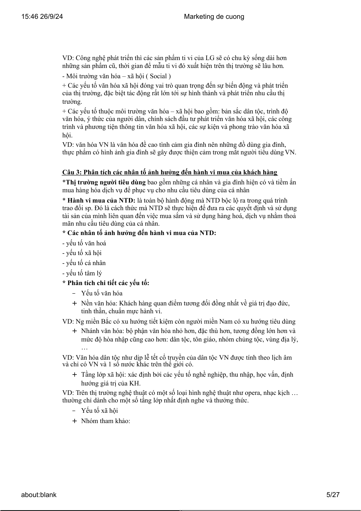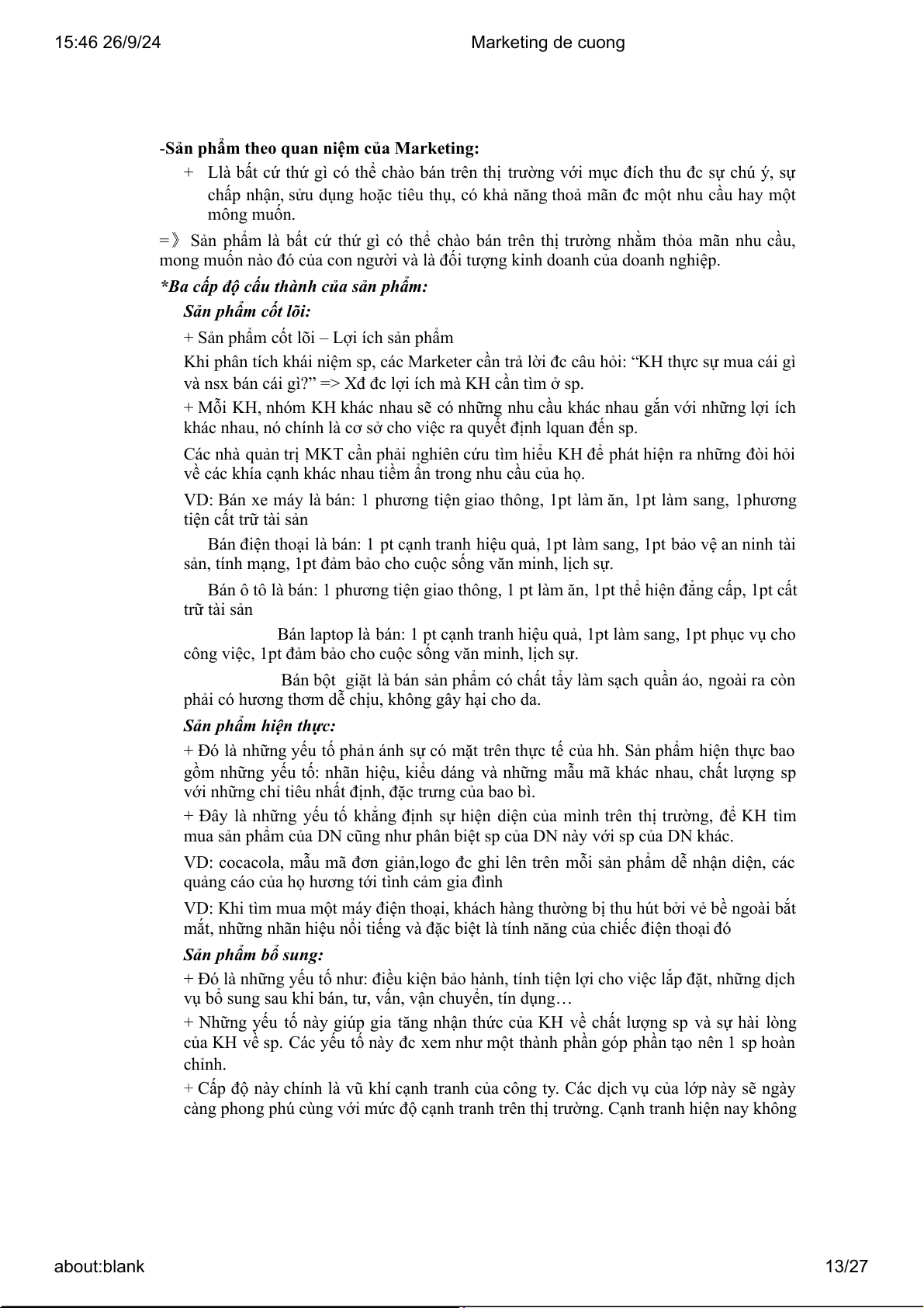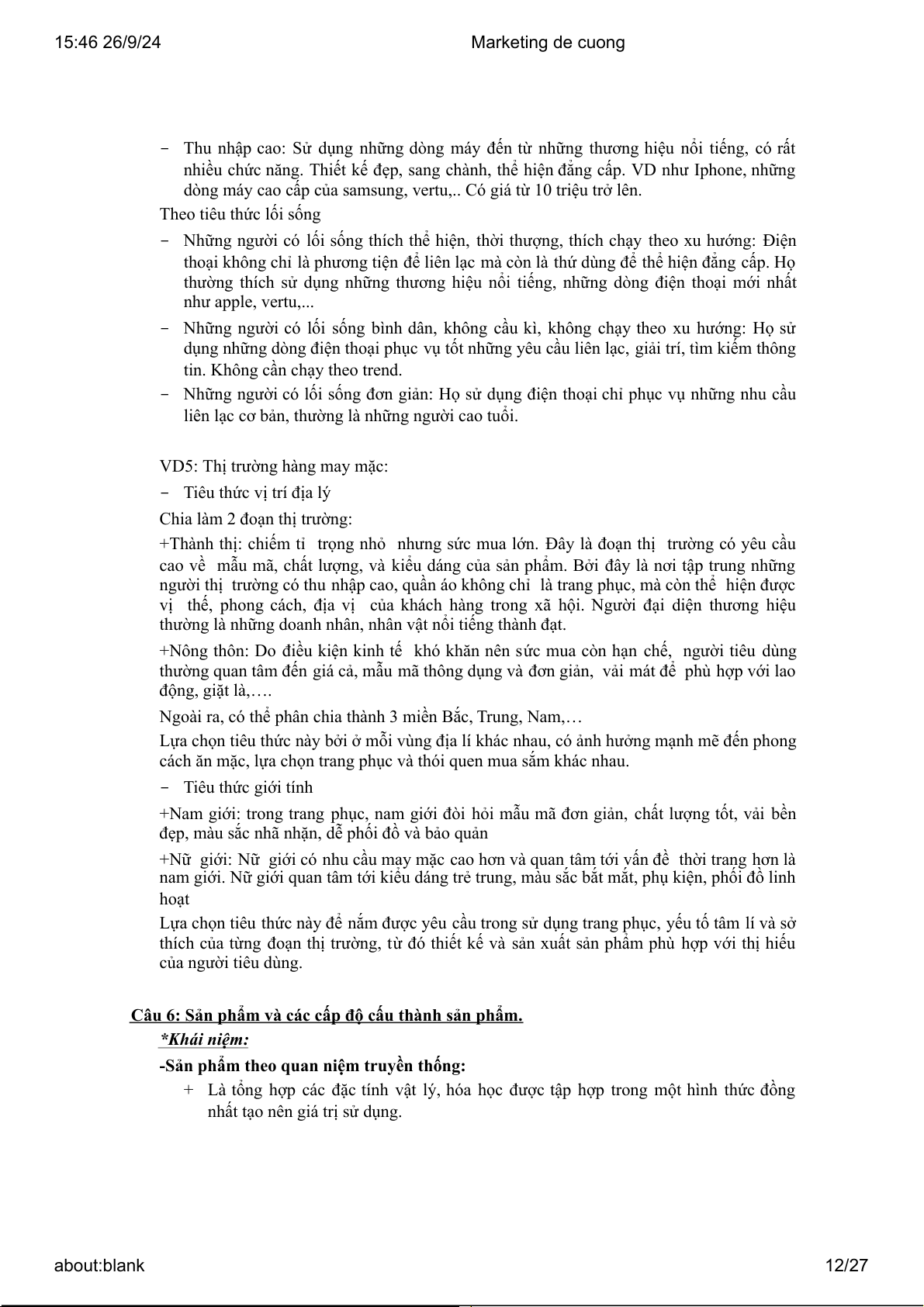 tiêu dùng phổ biến (bột giặt, điện thoại,…). about:blank 19/27 15:46 26/9/24 Marketing de cuong