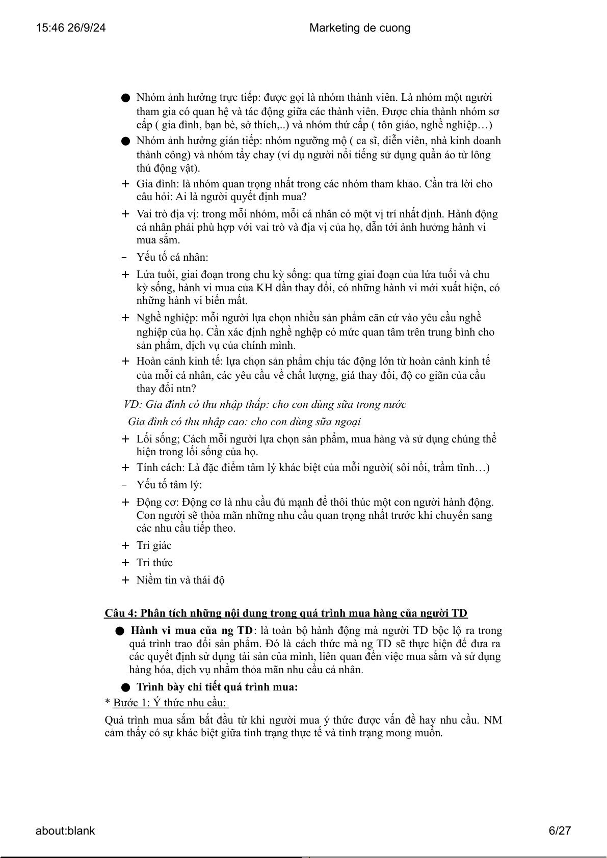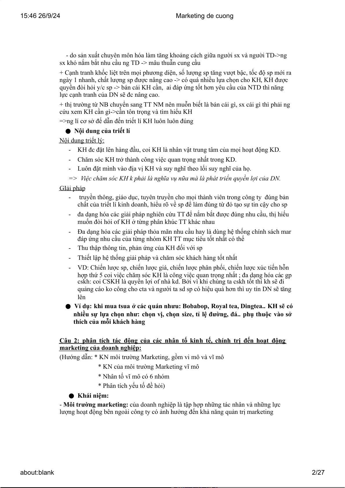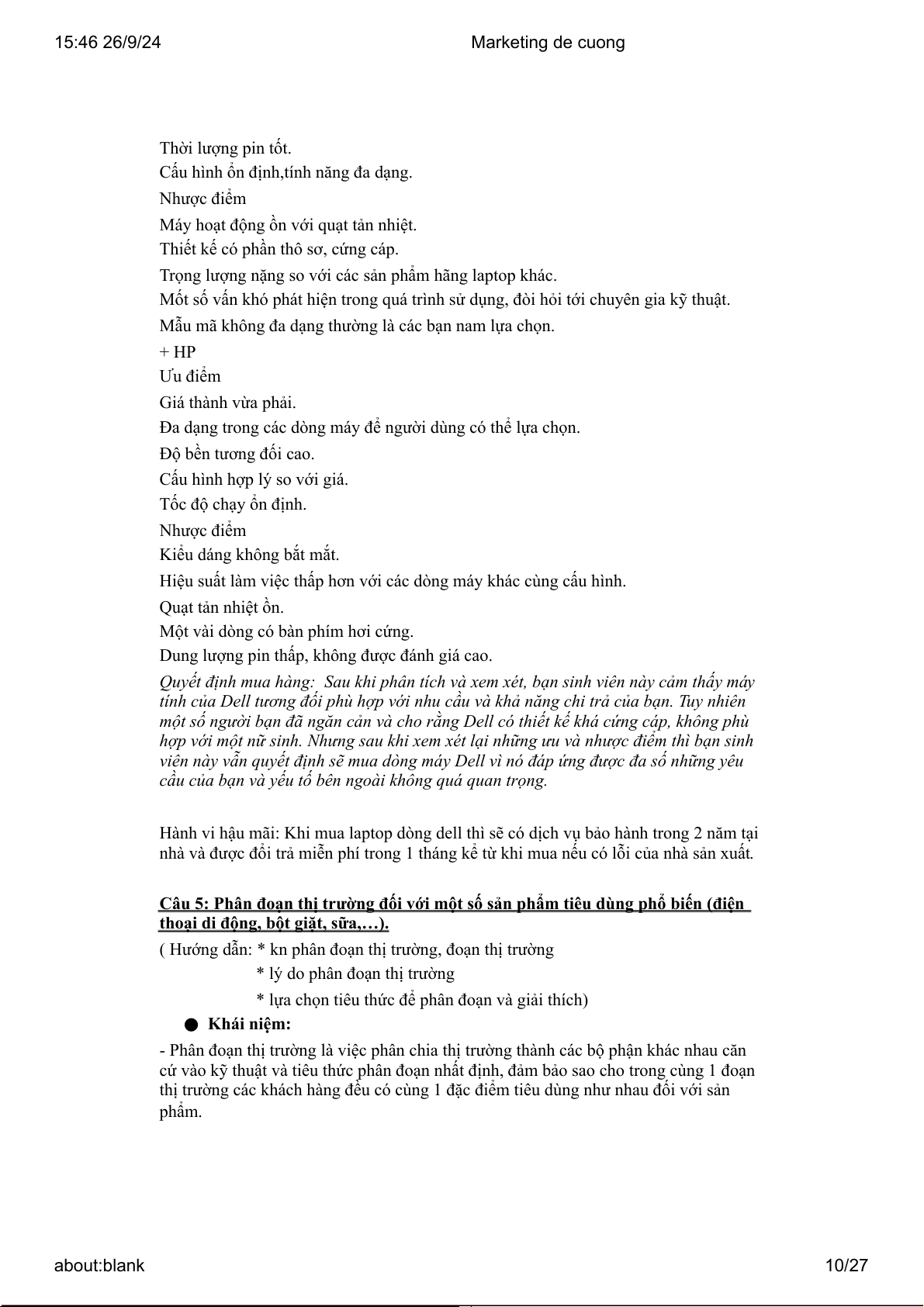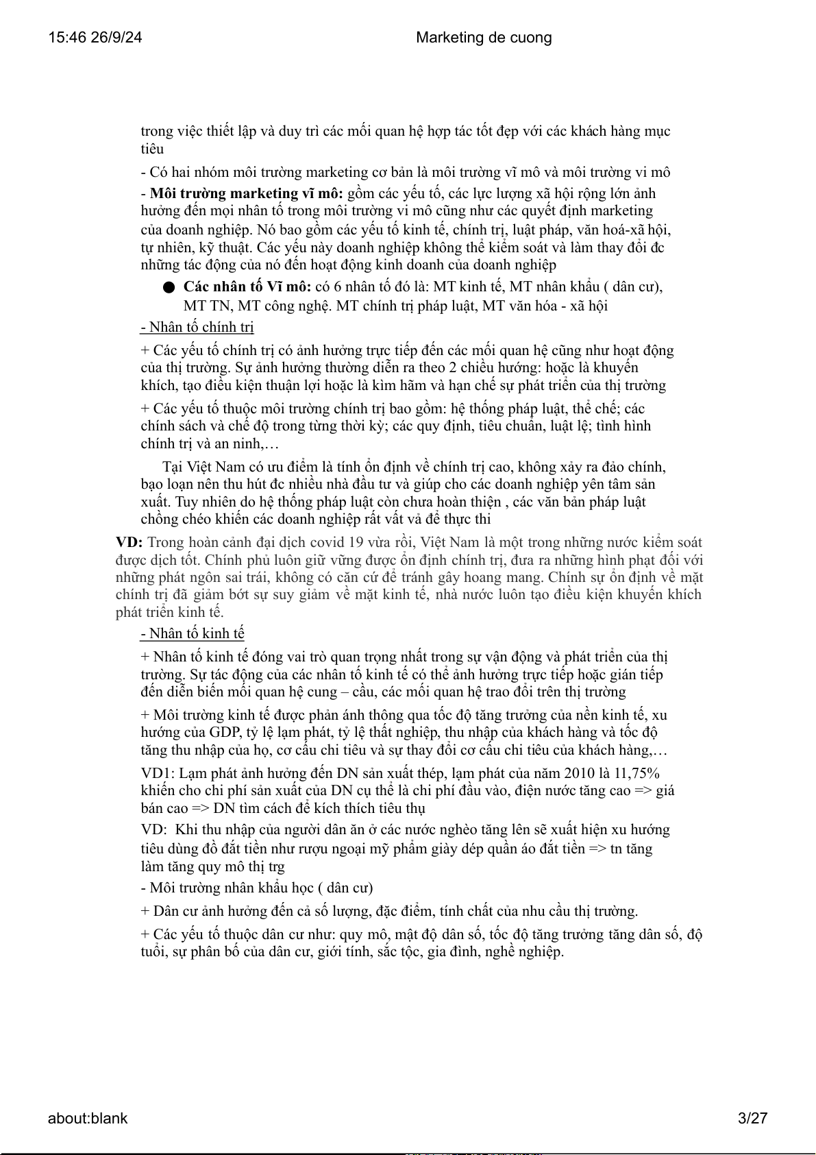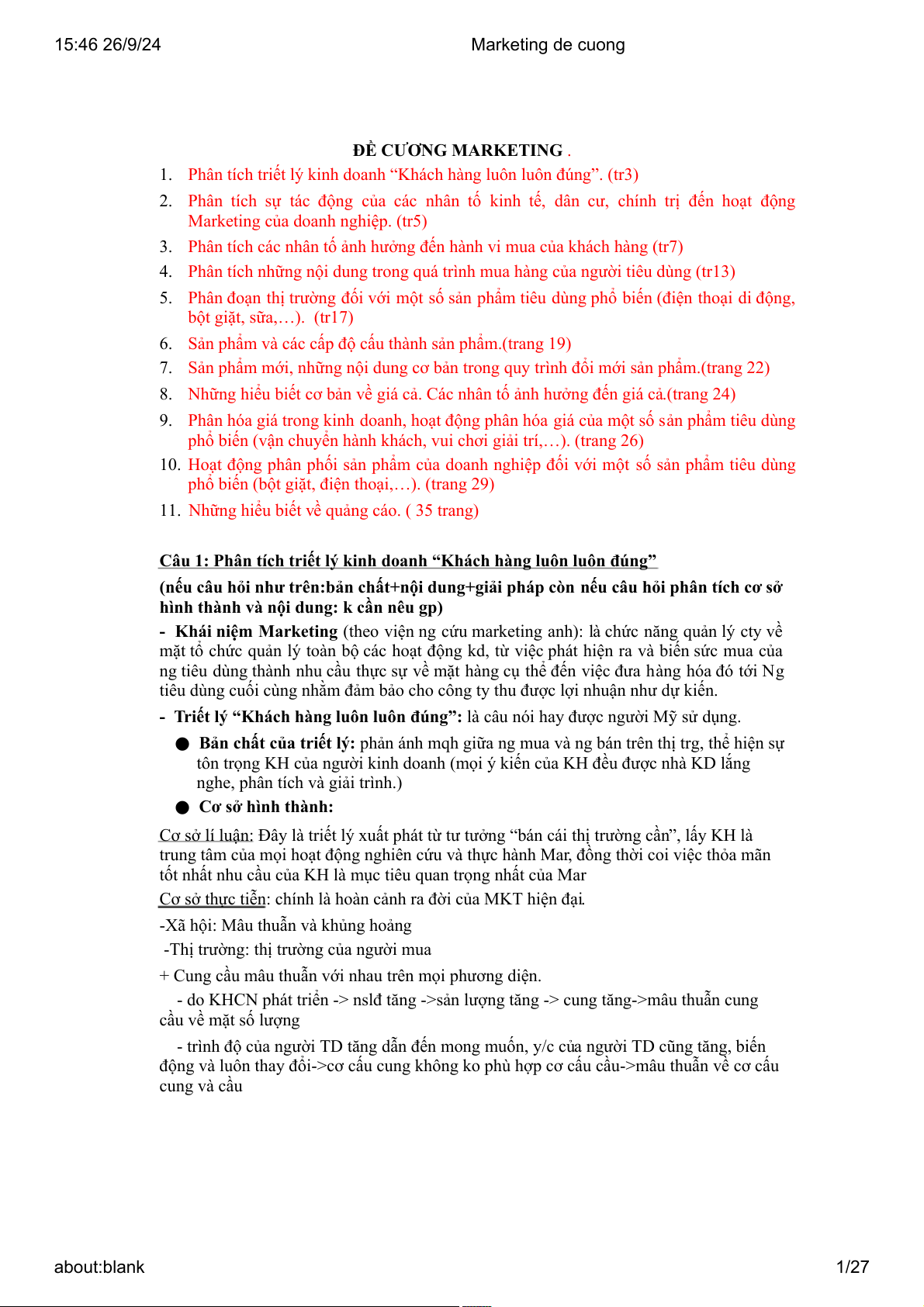 tiêu dùng phổ biến (bột giặt, điện thoại,…). about:blank 19/27 15:46 26/9/24 Marketing de cuong