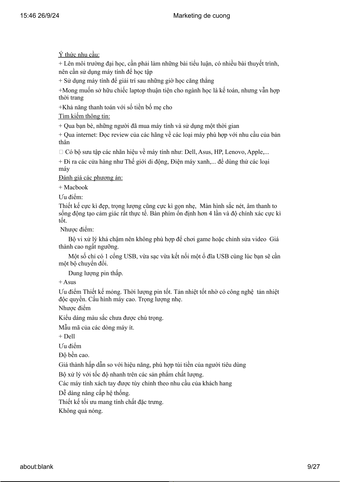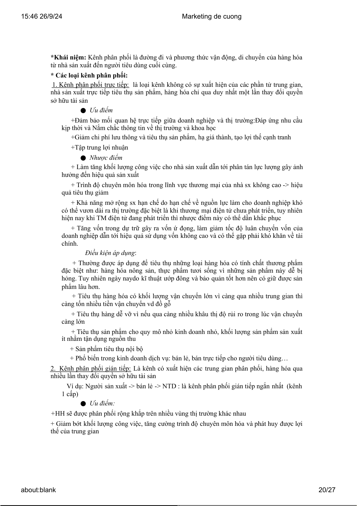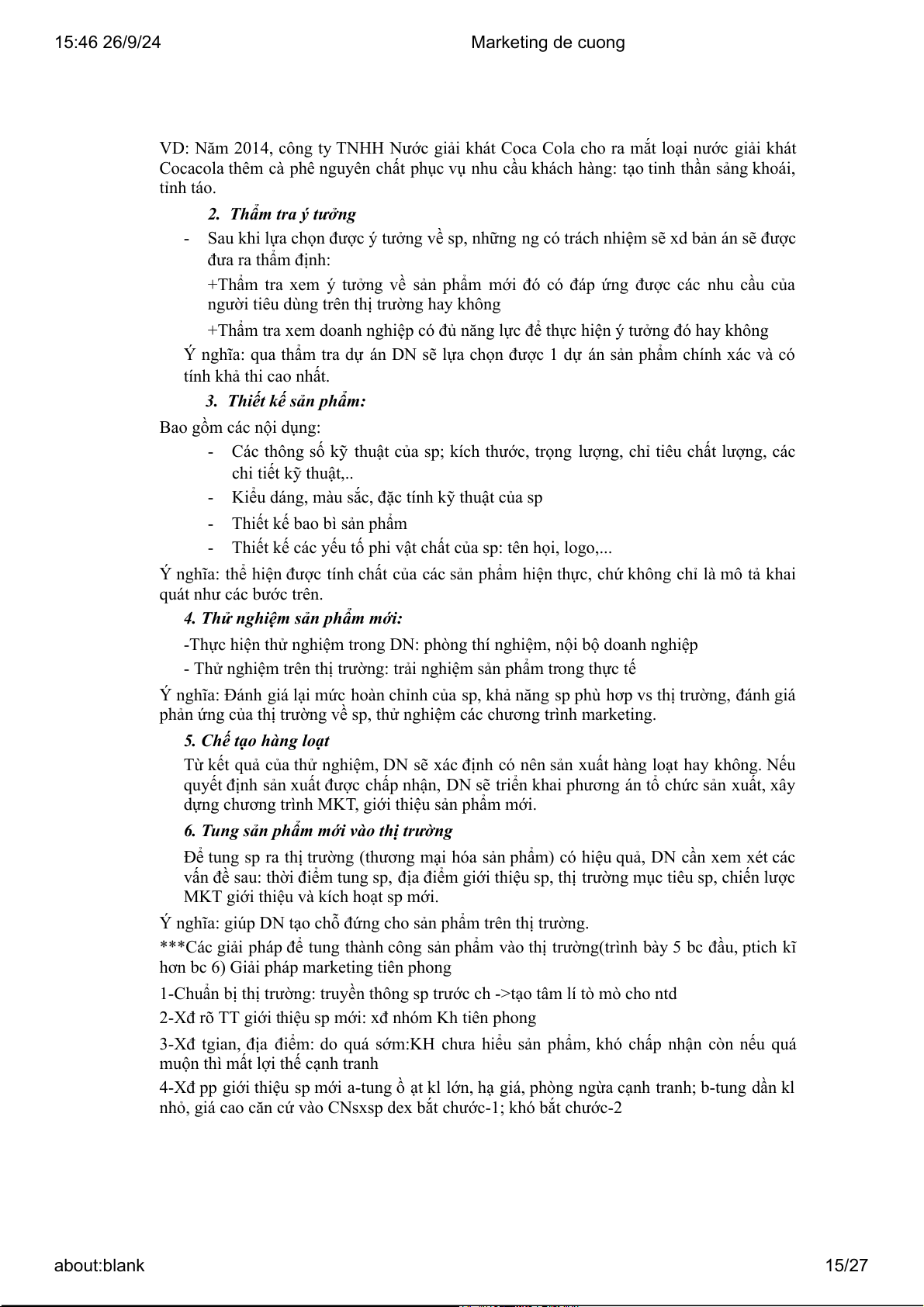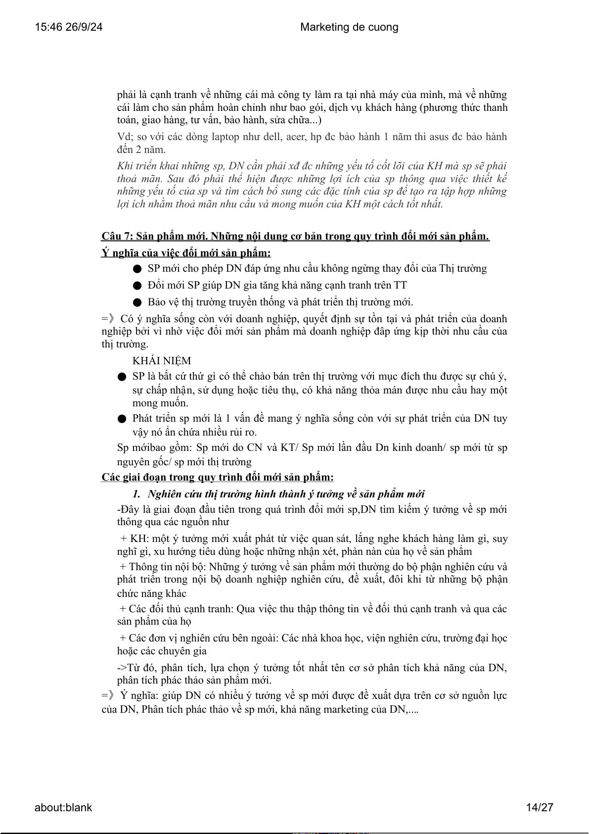tiêu dùng phổ biến (bột giặt, điện thoại,…). about:blank 19/27 15:46 26/9/24 Marketing de cuong