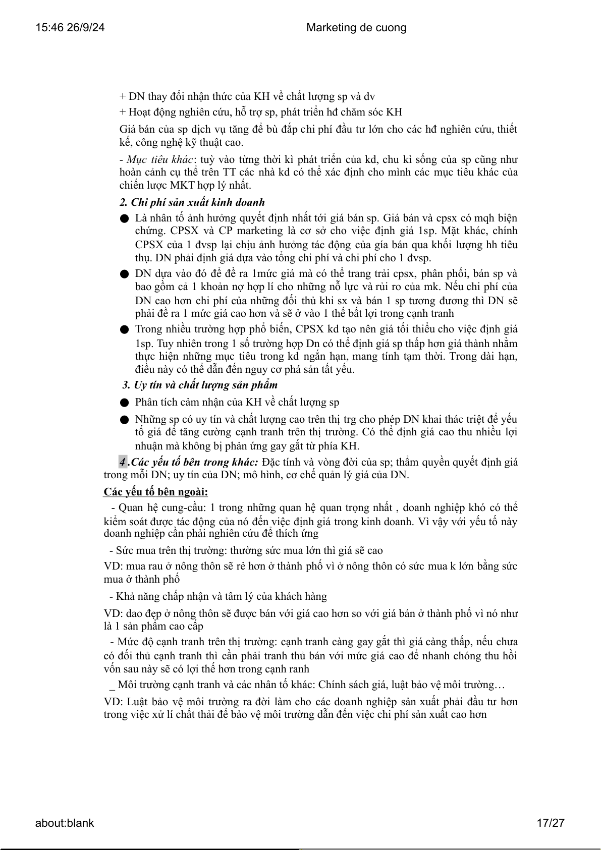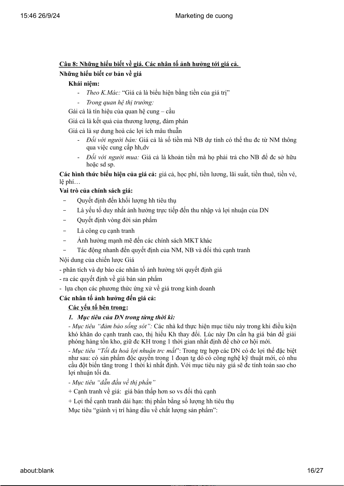 2.Yêu cầu trong phân hoá giá: about:blank 18/27 15:46 26/9/24 Marketing de cuong