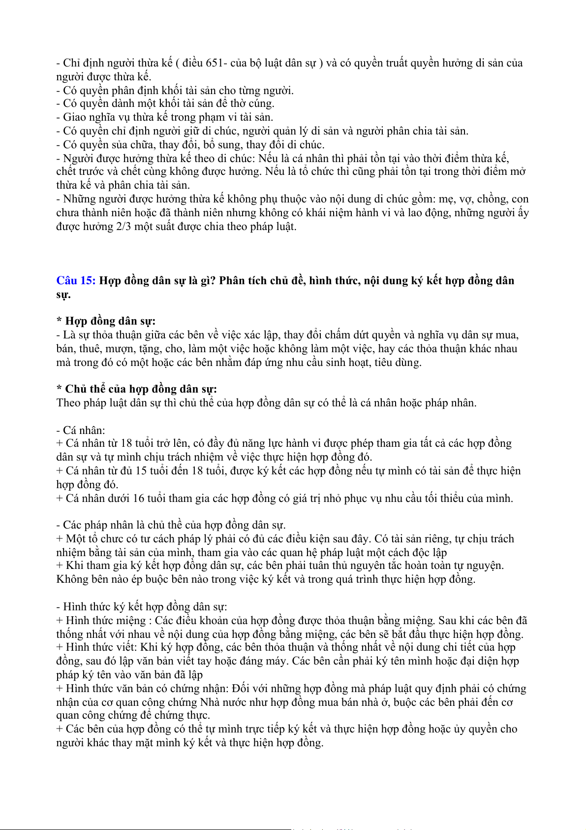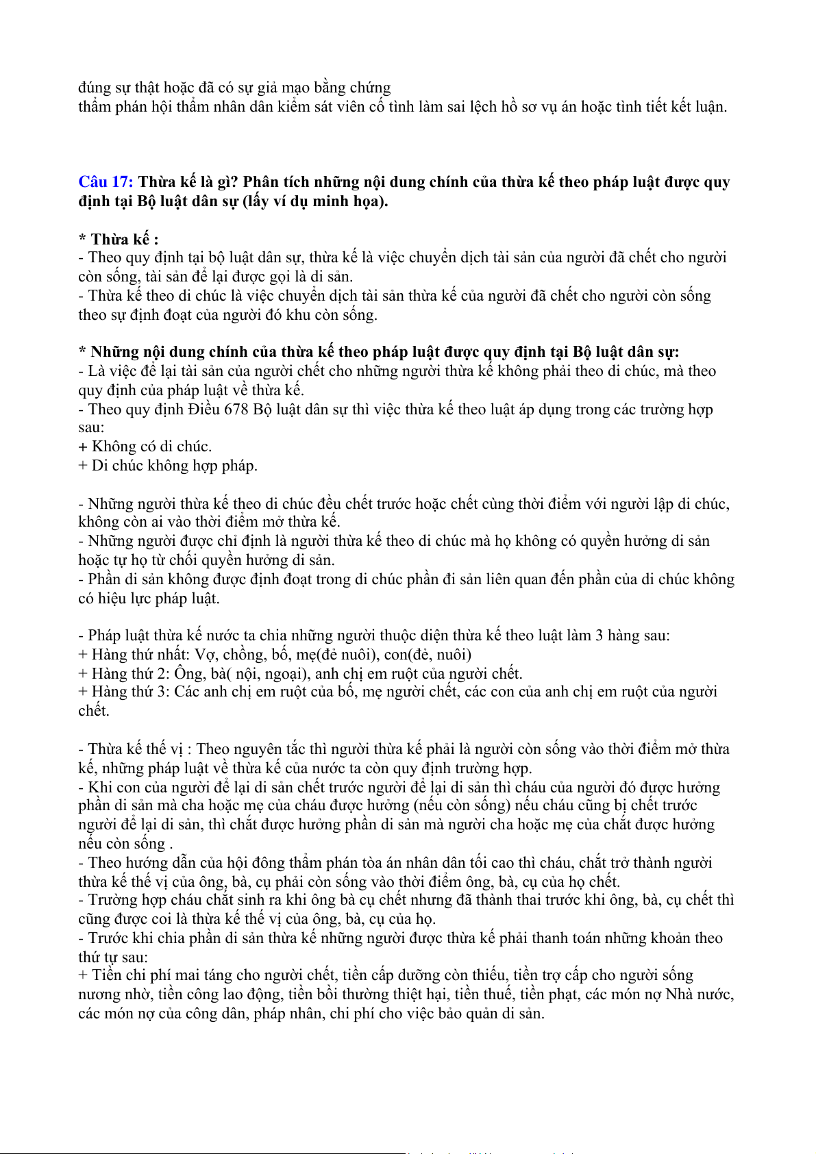 Câu 17: Thừa kế là gì? Phân tích những nội dung chính của thừa kế theo pháp luật được quy