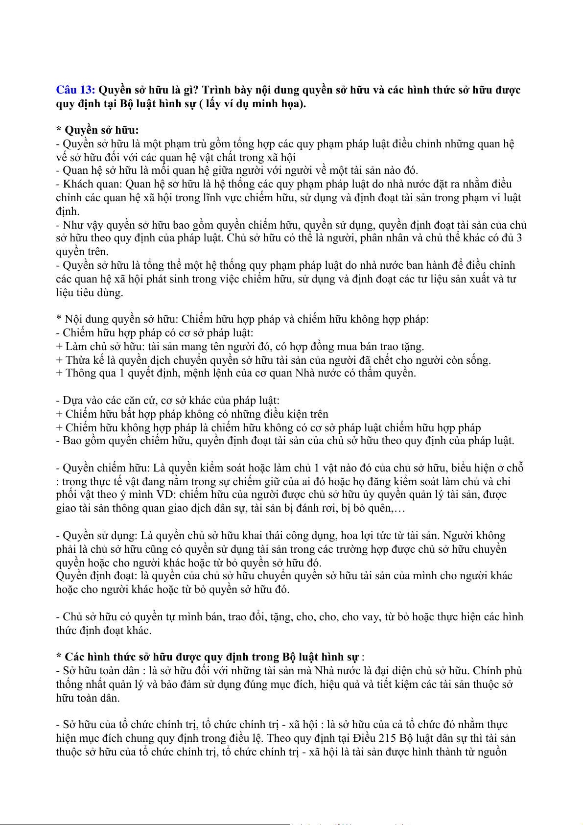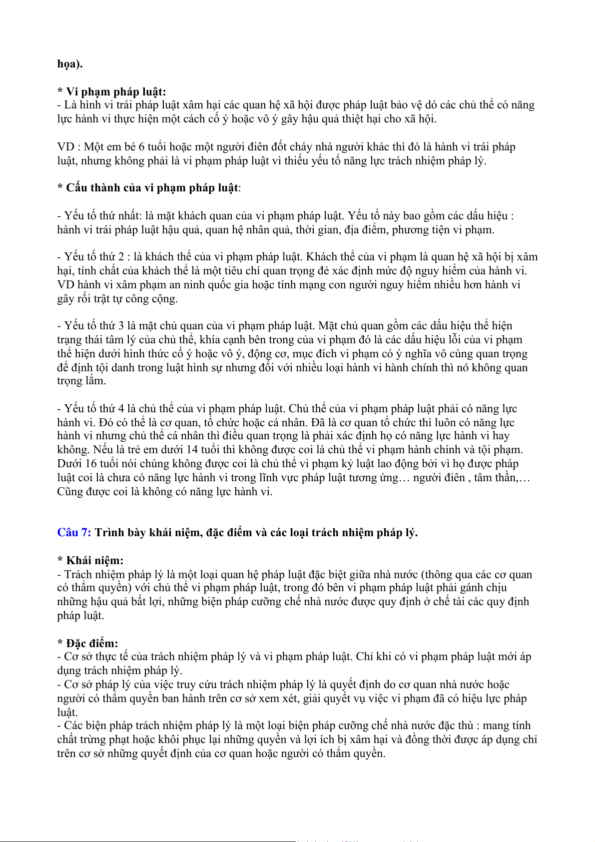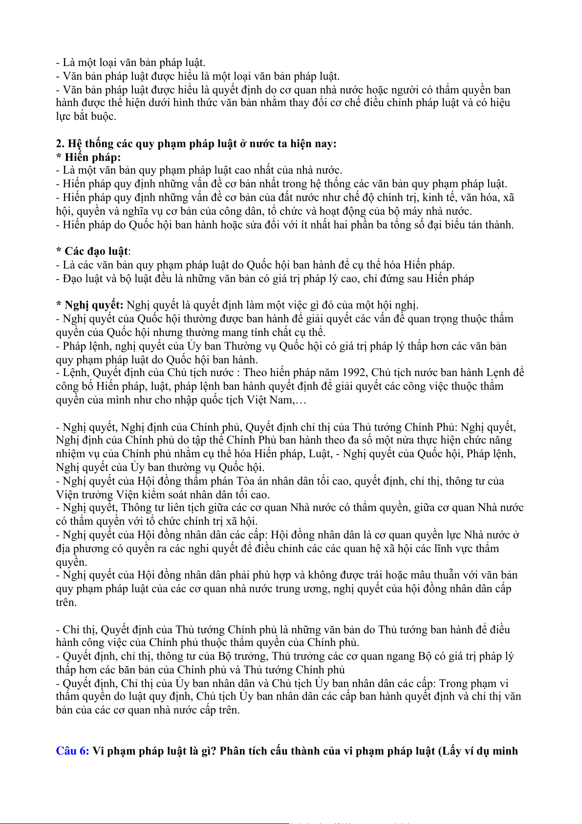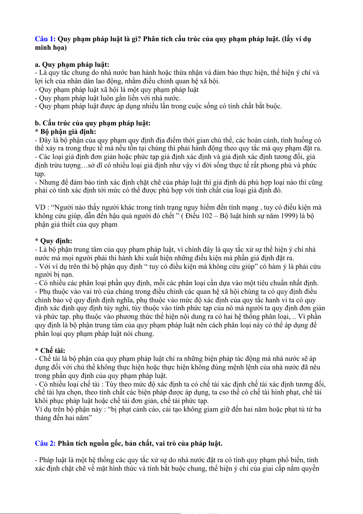 Câu 1: Quy phạm pháp luật là gì? Phân tích cấu trúc của quy phạm pháp luật. (lấy ví dụ minh họa) a. Quy phạm pháp luật: