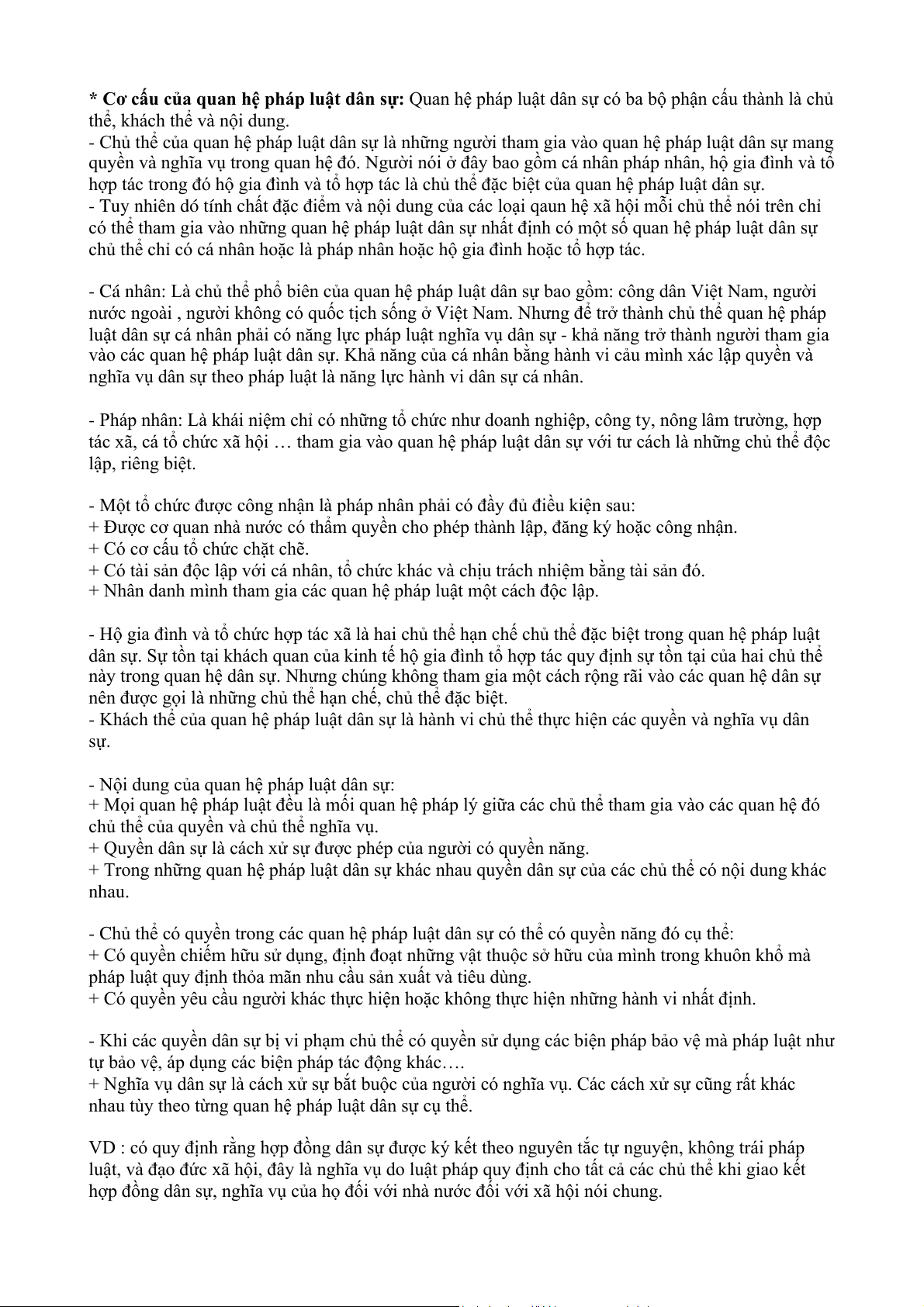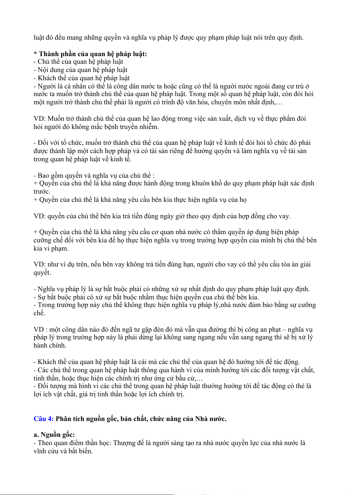 Câu 3: Quan hệ pháp luật là gì? Phân tích thành phần của quan hệ pháp luật (Lấy ví dụ minh họa). * Quan hệ pháp luật: