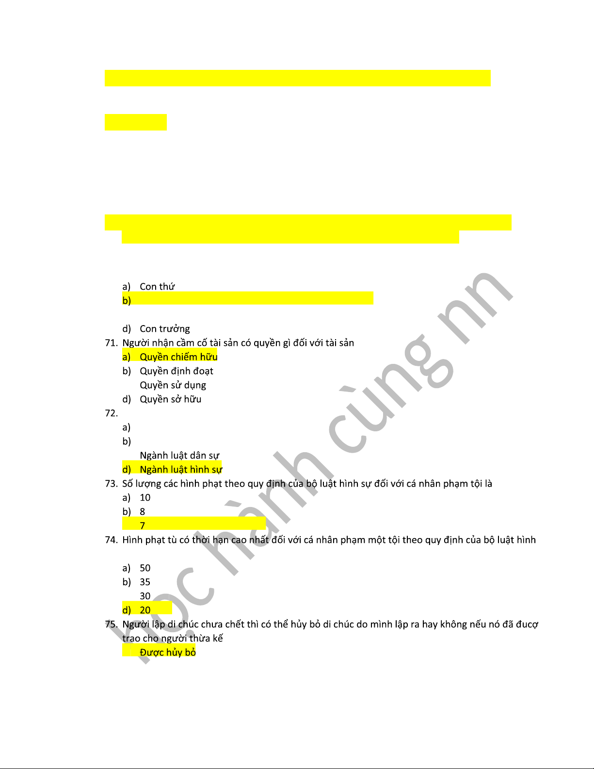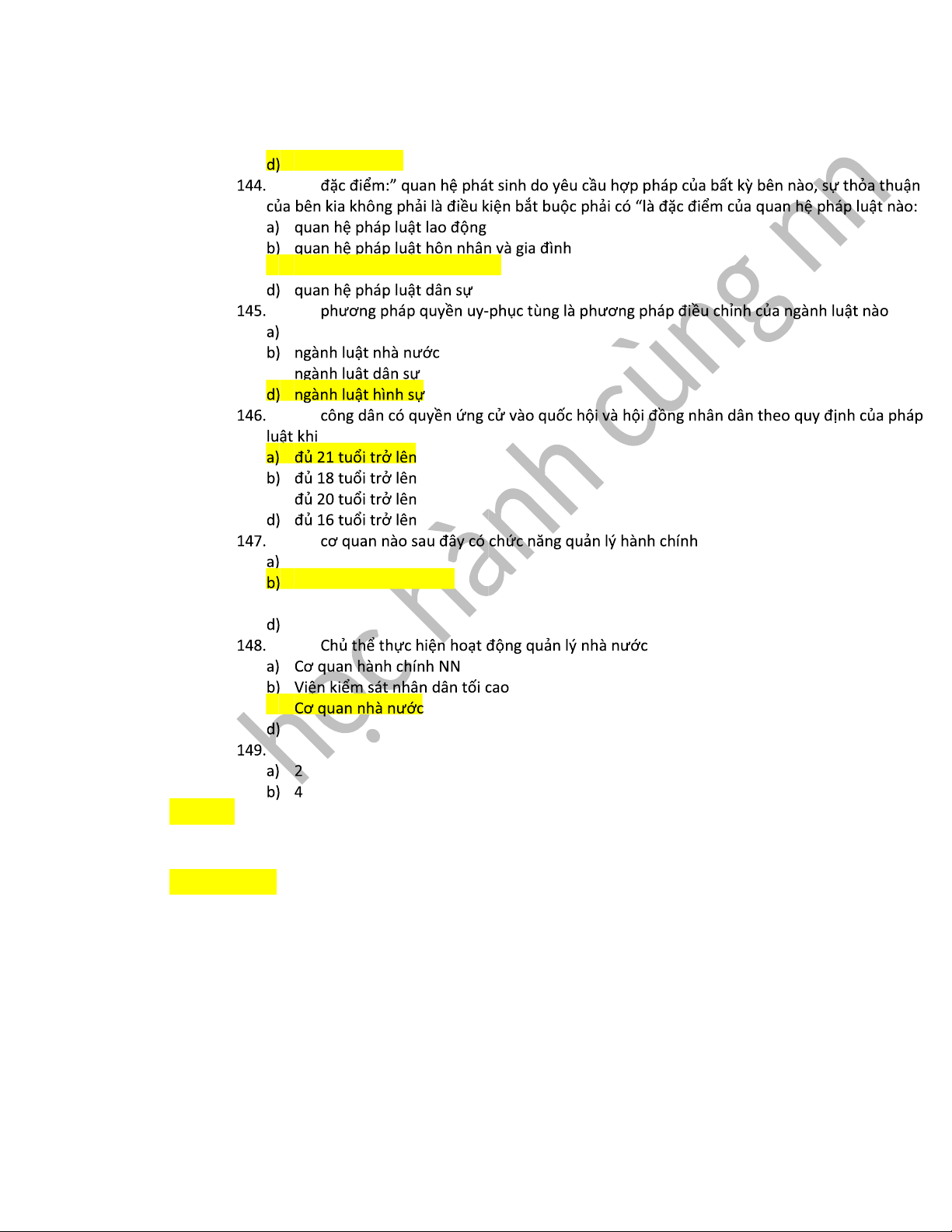 20. Quan hệ pháp luật hình thành do a) Ý chí của cá nhân