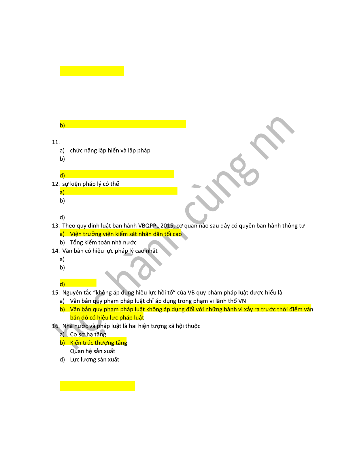 9. Theo quy định của luật ban hành văn bản QPPL 2015, cơ quan nào sau đây có quyền ban hành quyết định: a) Quốc hội