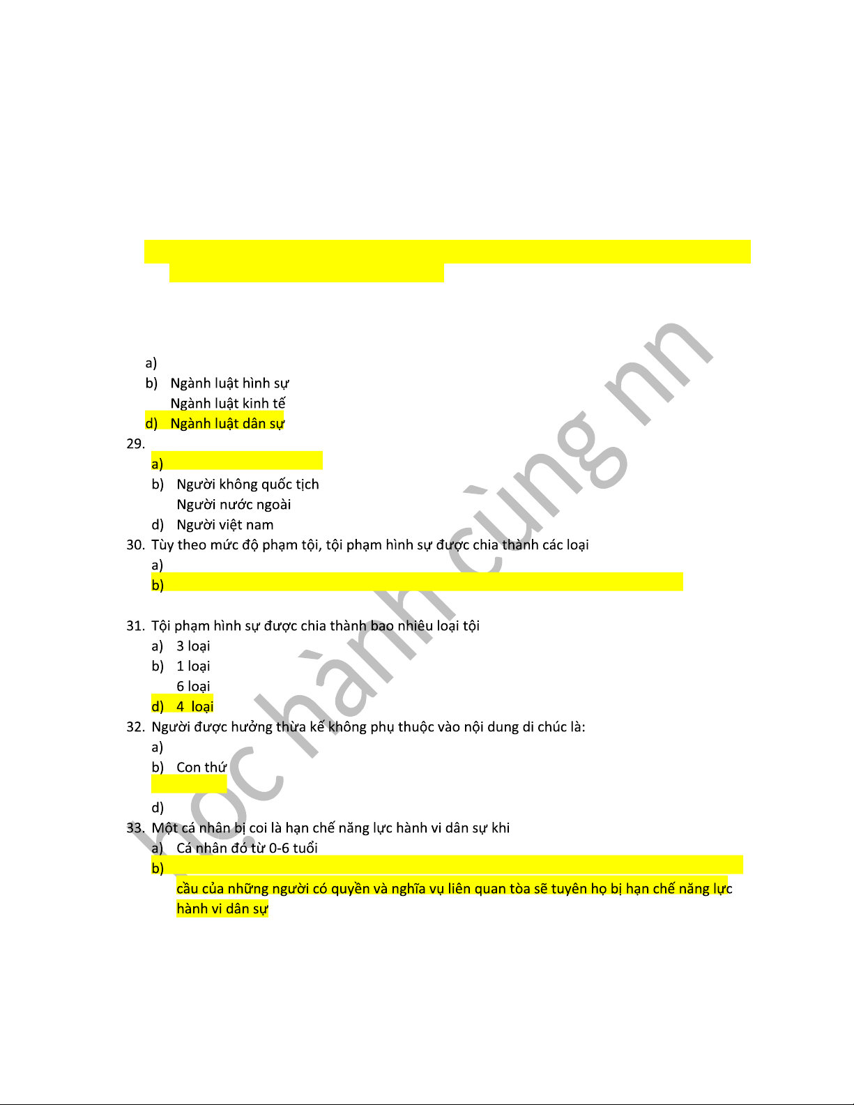 d) Tất cả các đáp án đều đúng 28. Ngành luật hành chính c)