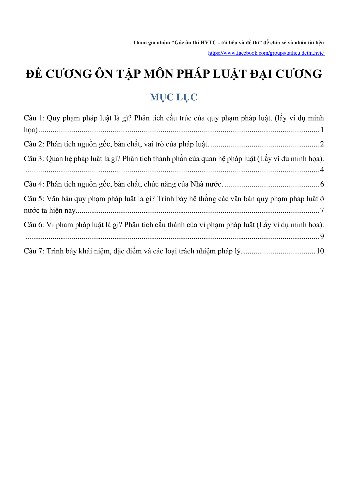 Câu 7: Trình bày khái niệm, đặc điểm và các loại trách nhiệm pháp lý. . . . . . . . . . . . . . . . . . . . 10