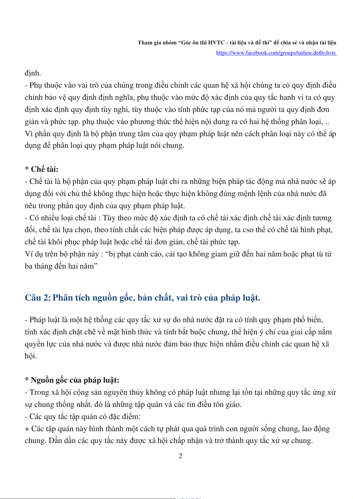 Câu 2: Phân tích nguồn gốc, bản chất, vai trò của pháp luật. . . . . . . . . . . . . . . . . . . . . . . . . . . . . 2