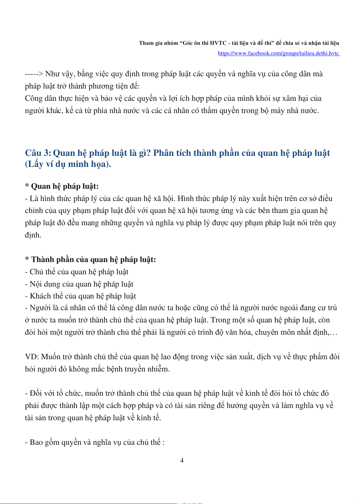 Câu 3: Quan hệ pháp luật là gì? Phân tích thành phần của quan hệ pháp luật (Lấy ví dụ minh họa).