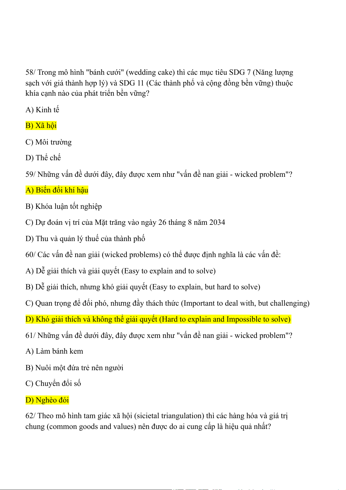 59/ Những vấn đề dưới đây, đây được xem như "vấn đề nan giải - wicked problem"? A) Biến đổi khí hậu B) Khóa luận tốt nghiệp