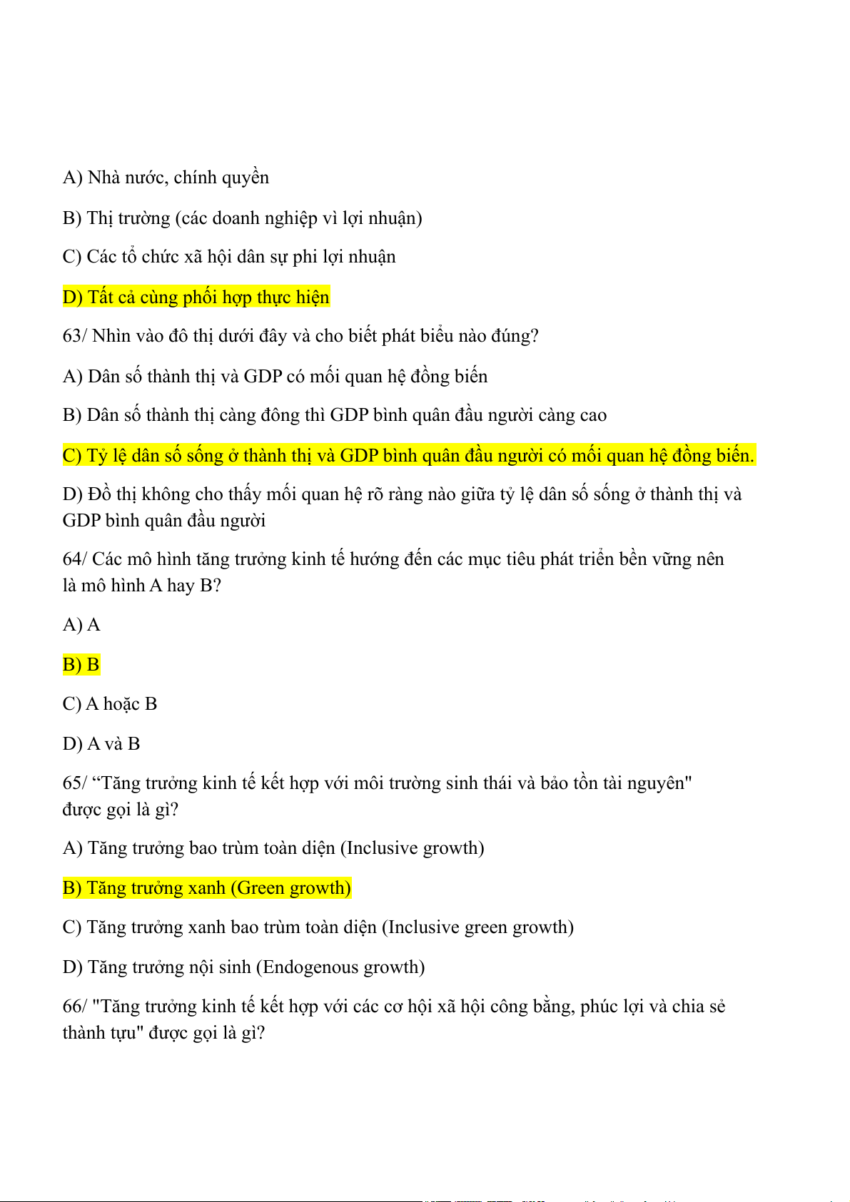 64/ Các mô hình tăng trưởng kinh tế hướng đến các mục tiêu phát triển bền vững nên là mô hình A hay B? A) A B) B C) A hoặc B D) A và B