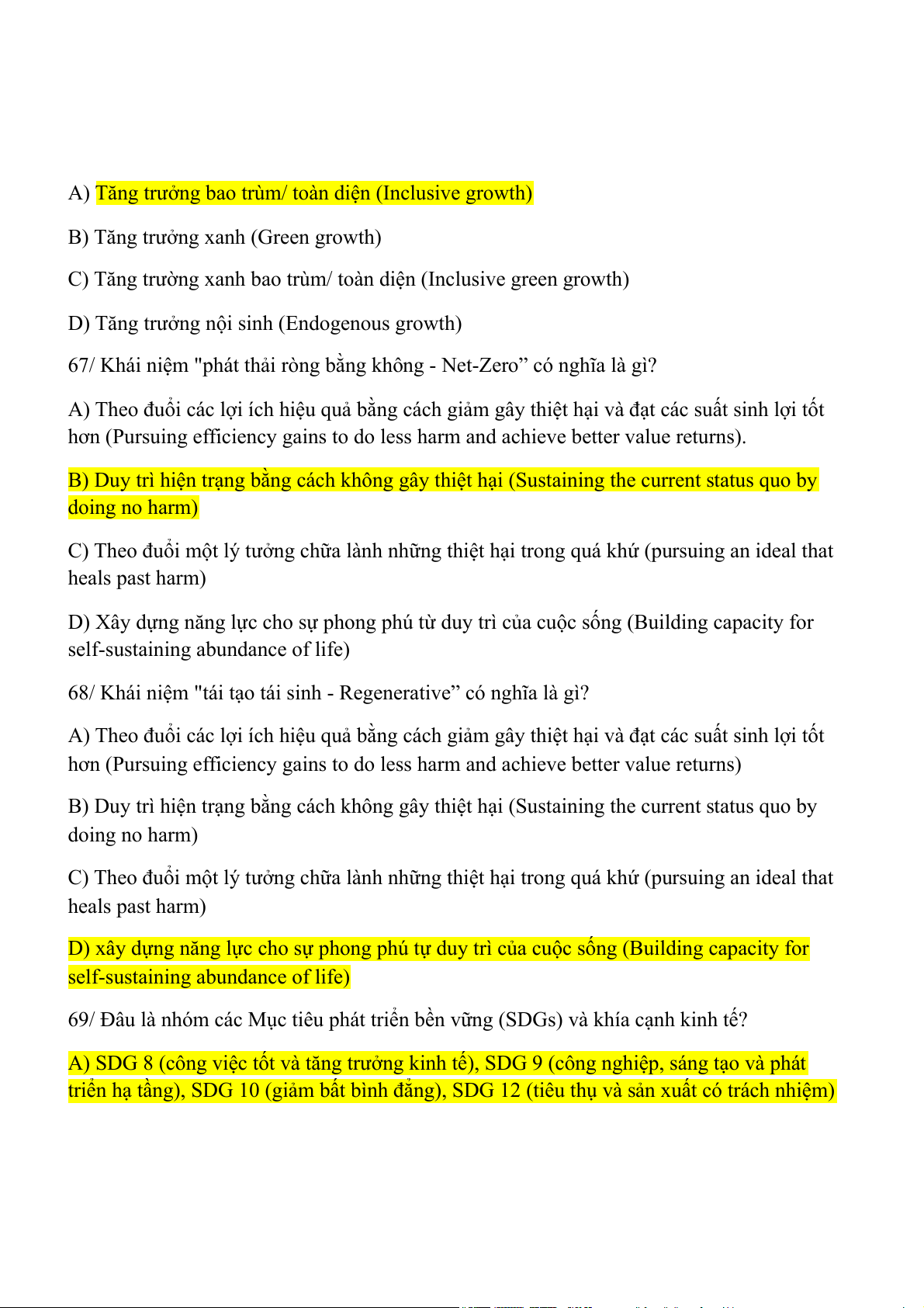 17/ Đáp ứng nhu cầu của hiện tại mà không ảnh hưởng đến khả năng của thế hệ tương