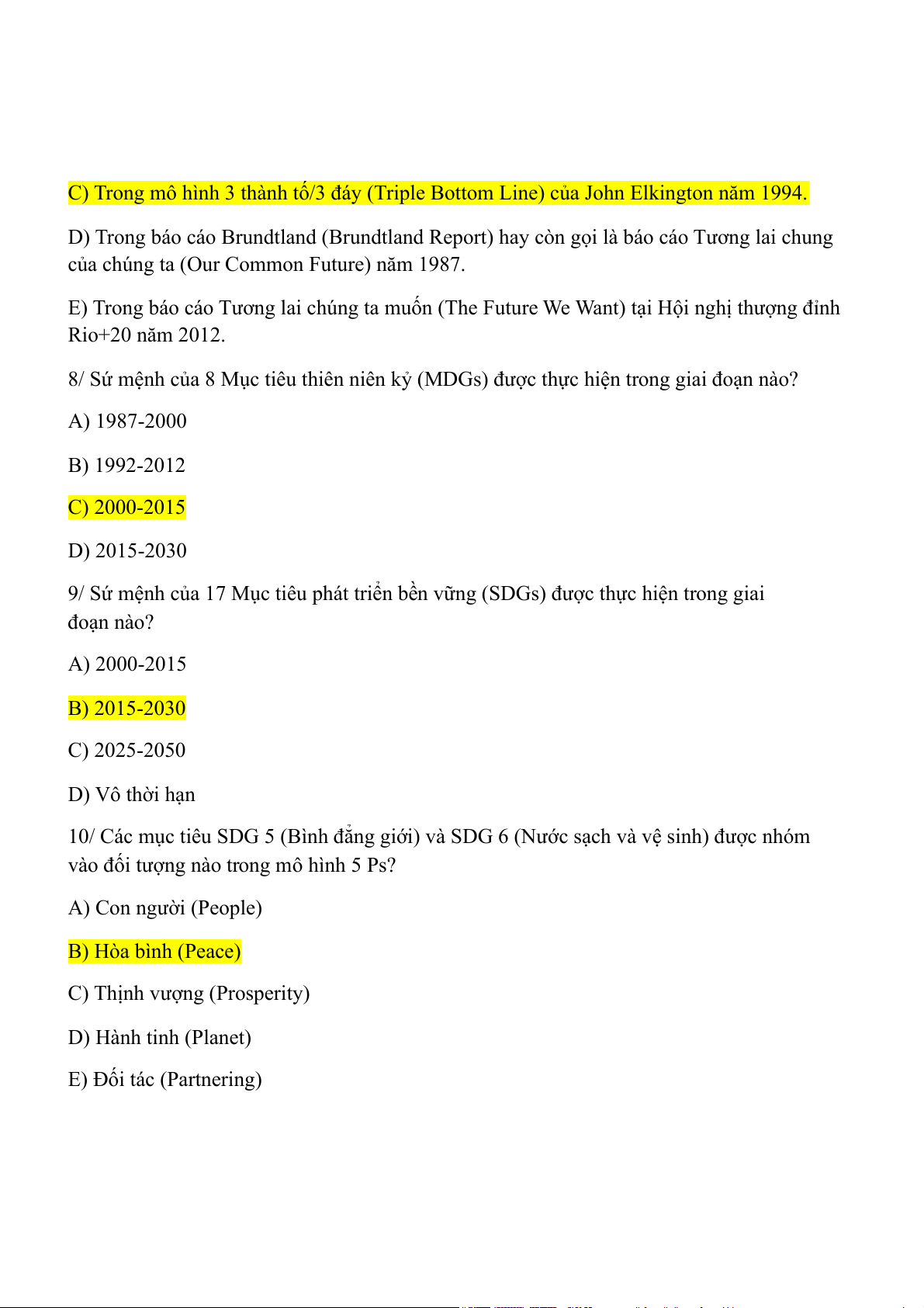 9/ Sứ mệnh của 17 Mục tiêu phát triển bền vững (SDGs) được thực hiện trong giai đoạn nào? A) 2000-2015 B) 2015-2030 C) 2025-2050 D) Vô thời hạn