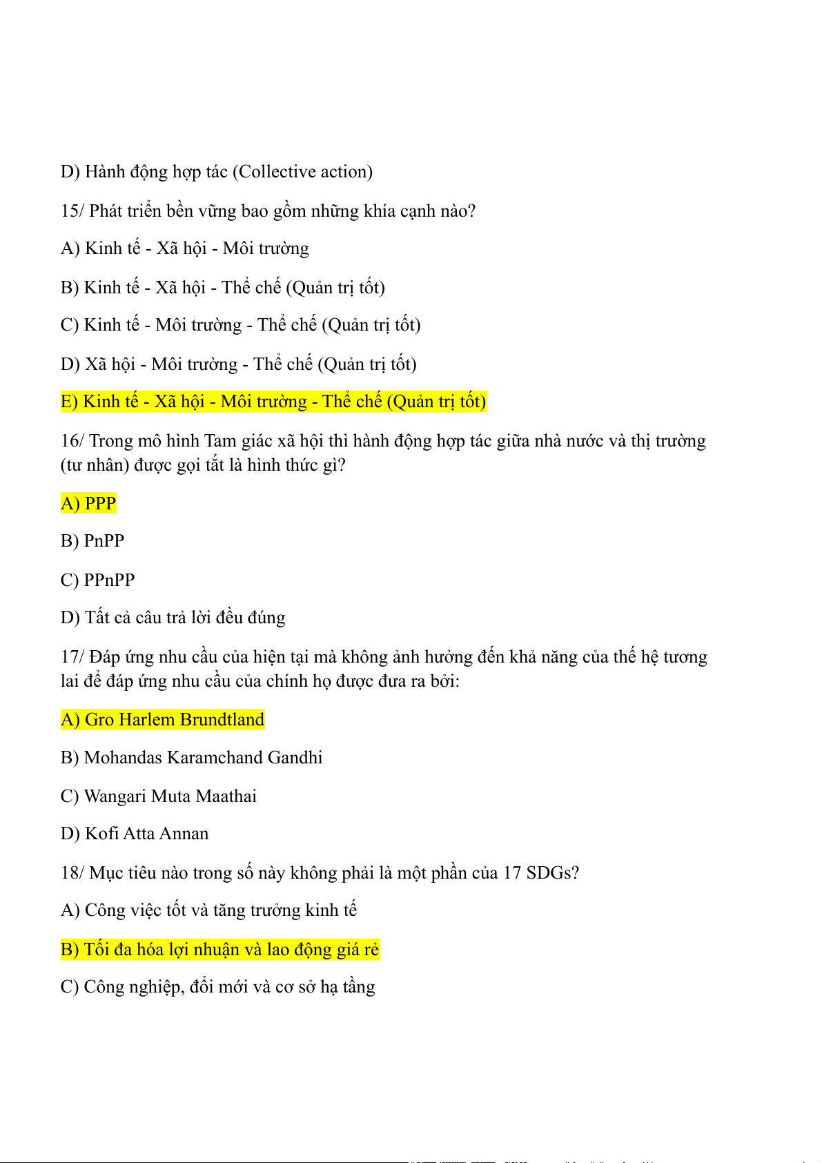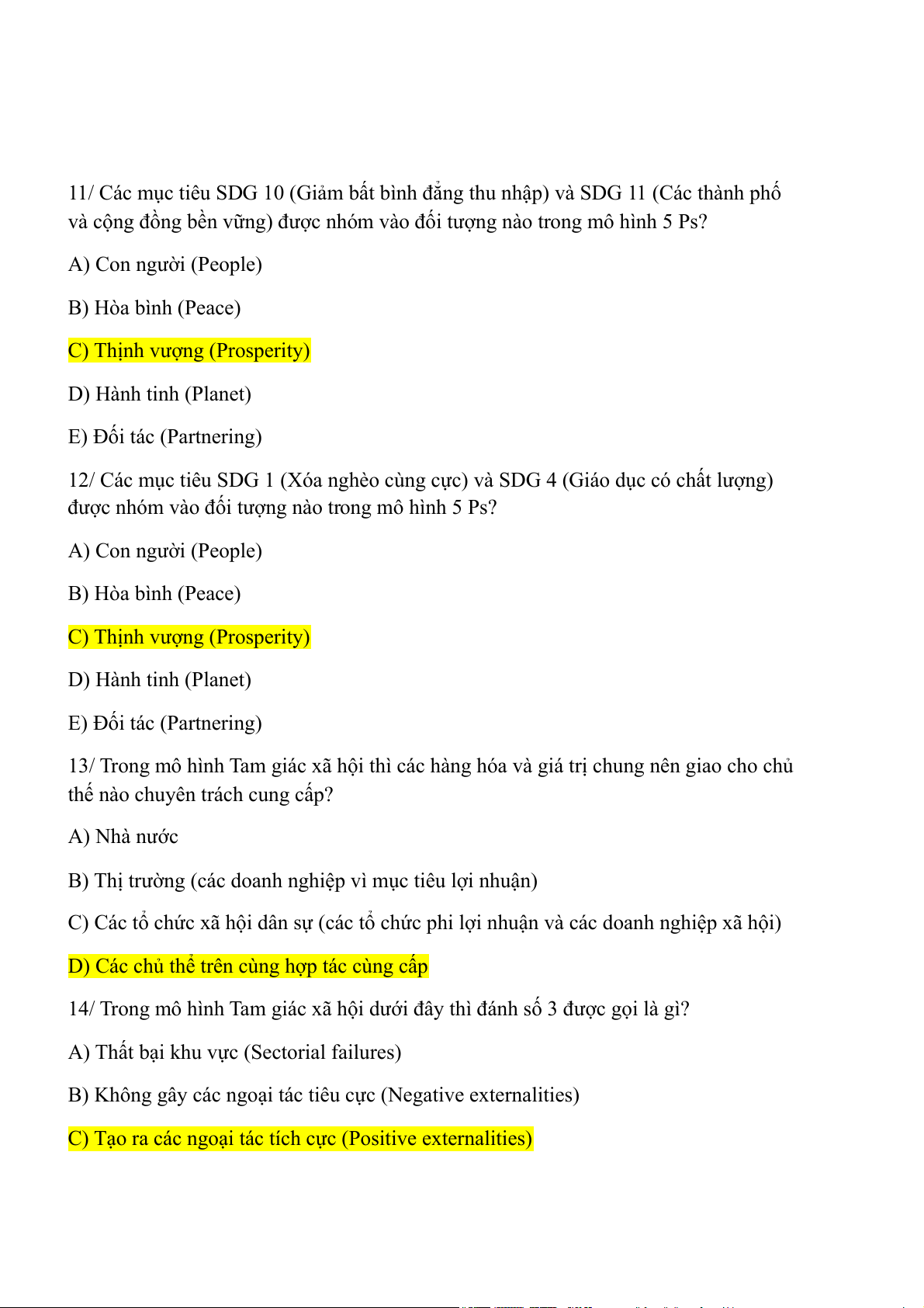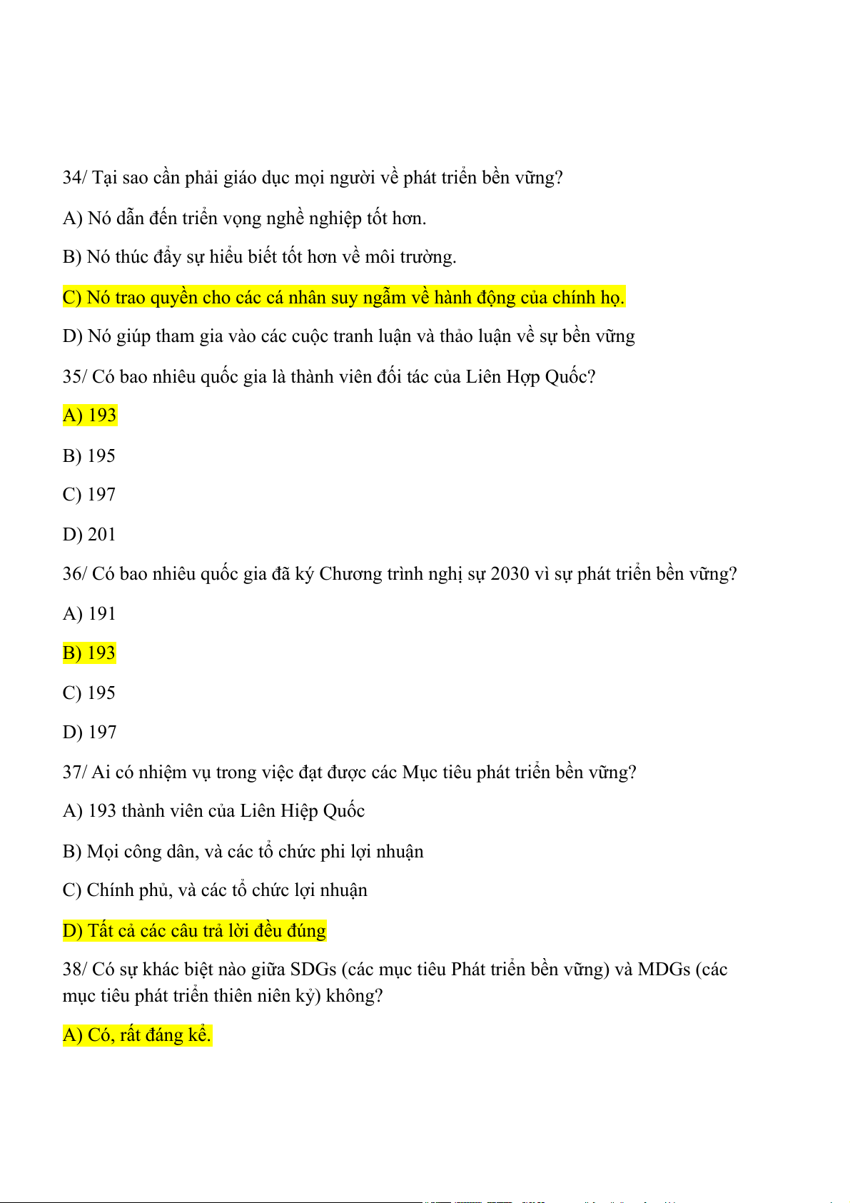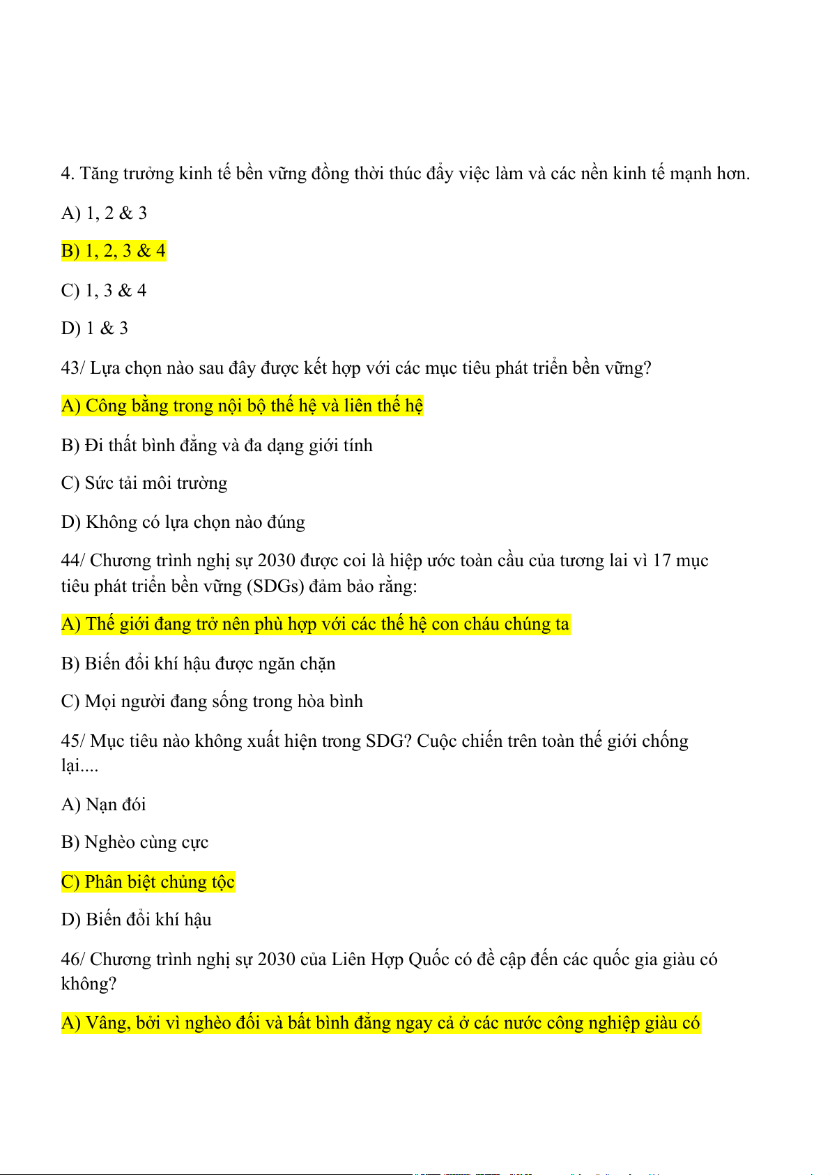 20/ Liên Hợp Quốc đặt mục tiêu đạt được SDGs vào năm nào? A) 2015 B) 2030 C) 2050 D) 2100