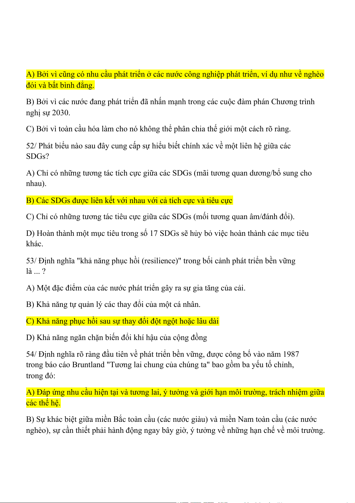 19/ Các mục tiêu phát triển bền vững (SDGs) liên quan đến? A) Tất cả các quốc gia B) Các nước giàu C) Các người nghèo