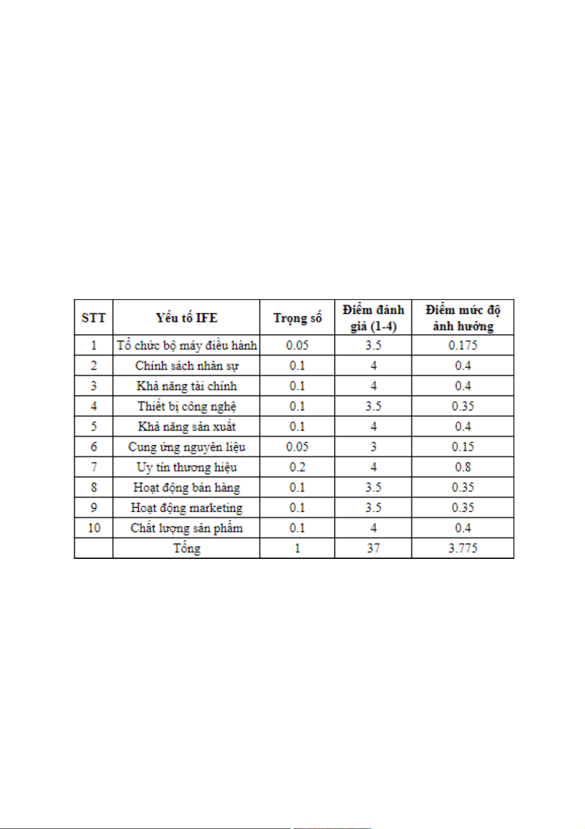Câu 6: Đề xuất các yếu tố của Ma trận đánh giá môi trường bên trong (IFE) của