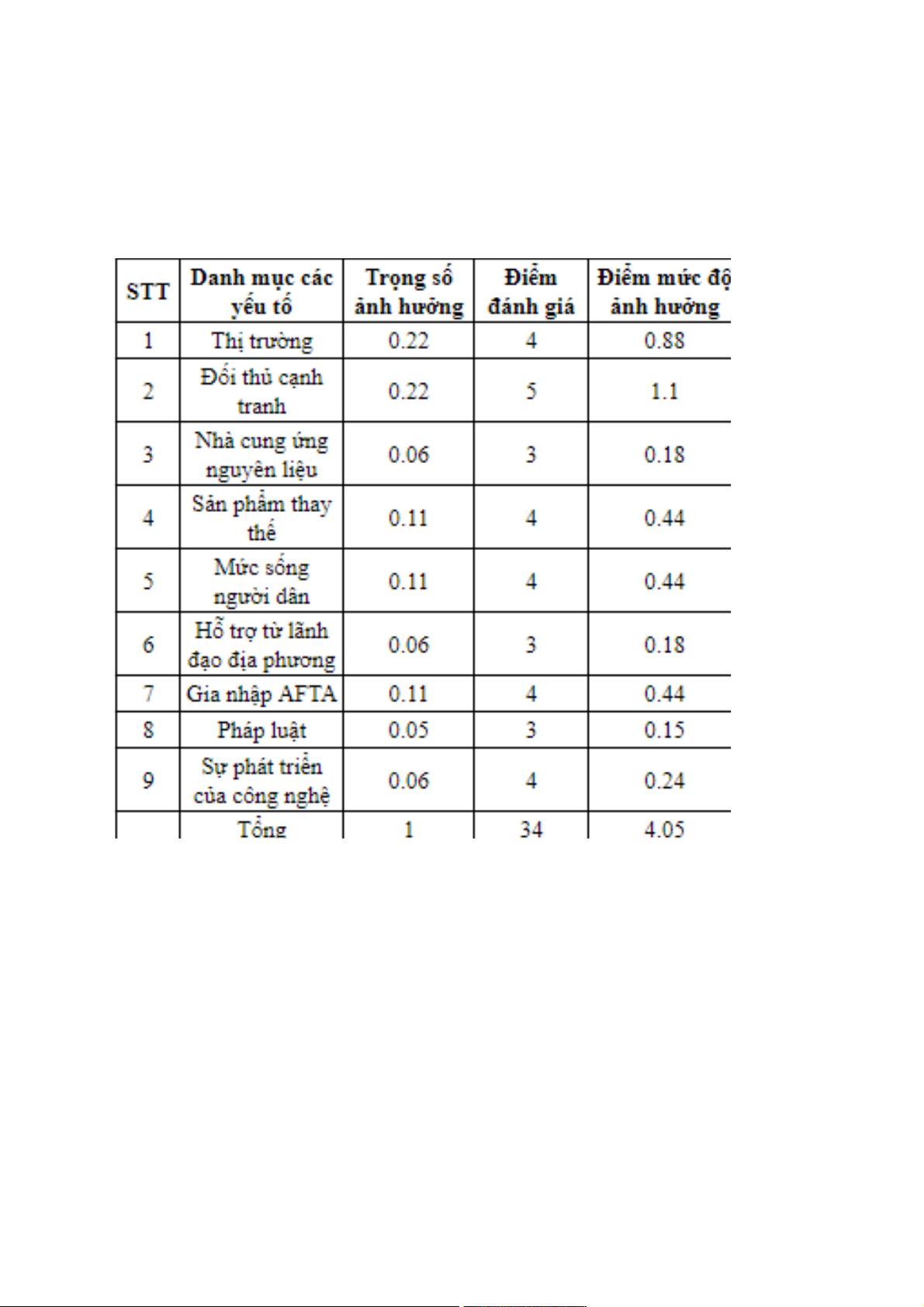 2. Đề xuất các yếu tố của ma trận EFE cho sản phẩm sữa tươi của Công ty cổ phần sữa Việt Nam (Vinamilk) 13