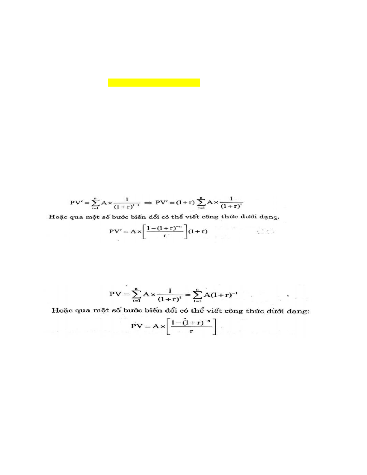 1_17 Hãy cho biết công thức về giá trí hiện tại của một đòng tiền đều đầu kì, cuối kí? giải thích?
