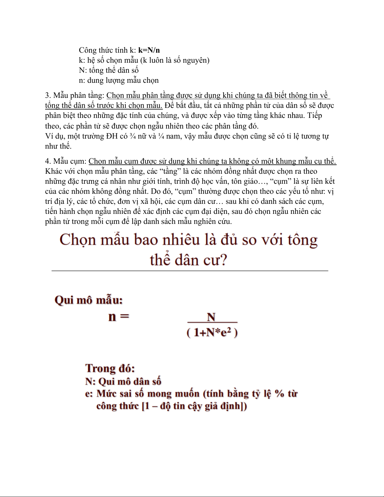 k: hệ số chọn mẫu (k luôn là số nguyên) N: tổng thể dân số n: dung lượng mẫu chọn