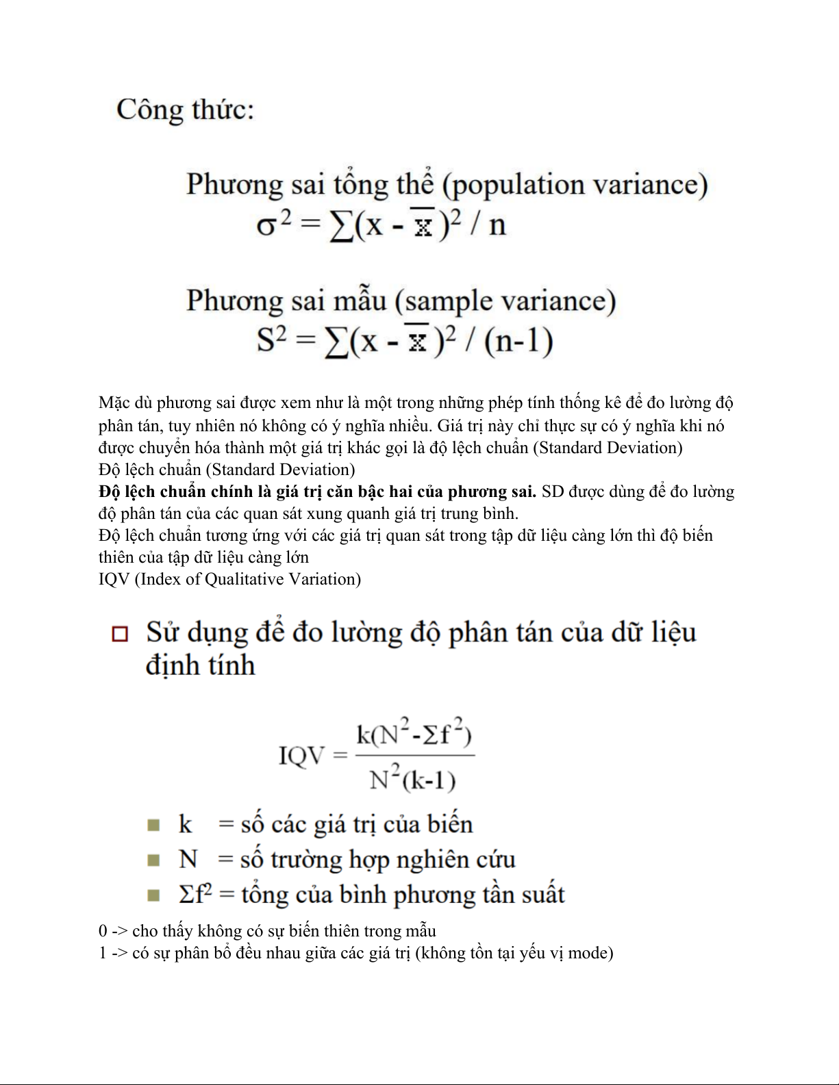 lường độ phân tán yếu nhất và ít được sử dụng. Phương sai (Variance):