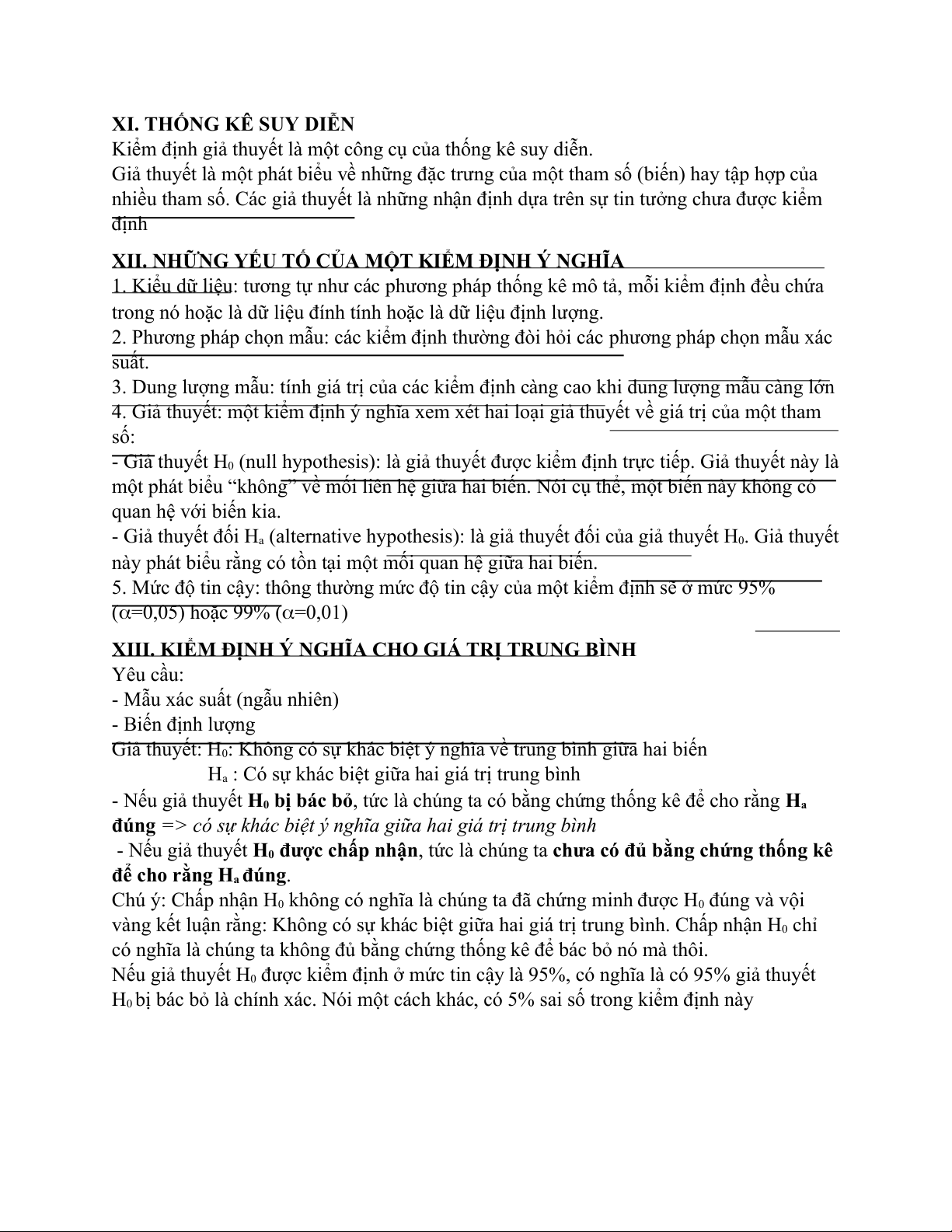 1 -> có sự phân bổ đều nhau giữa các giá trị (không tồn tại yếu vị mode) XI. THỐNG KÊ SUY DIỄN