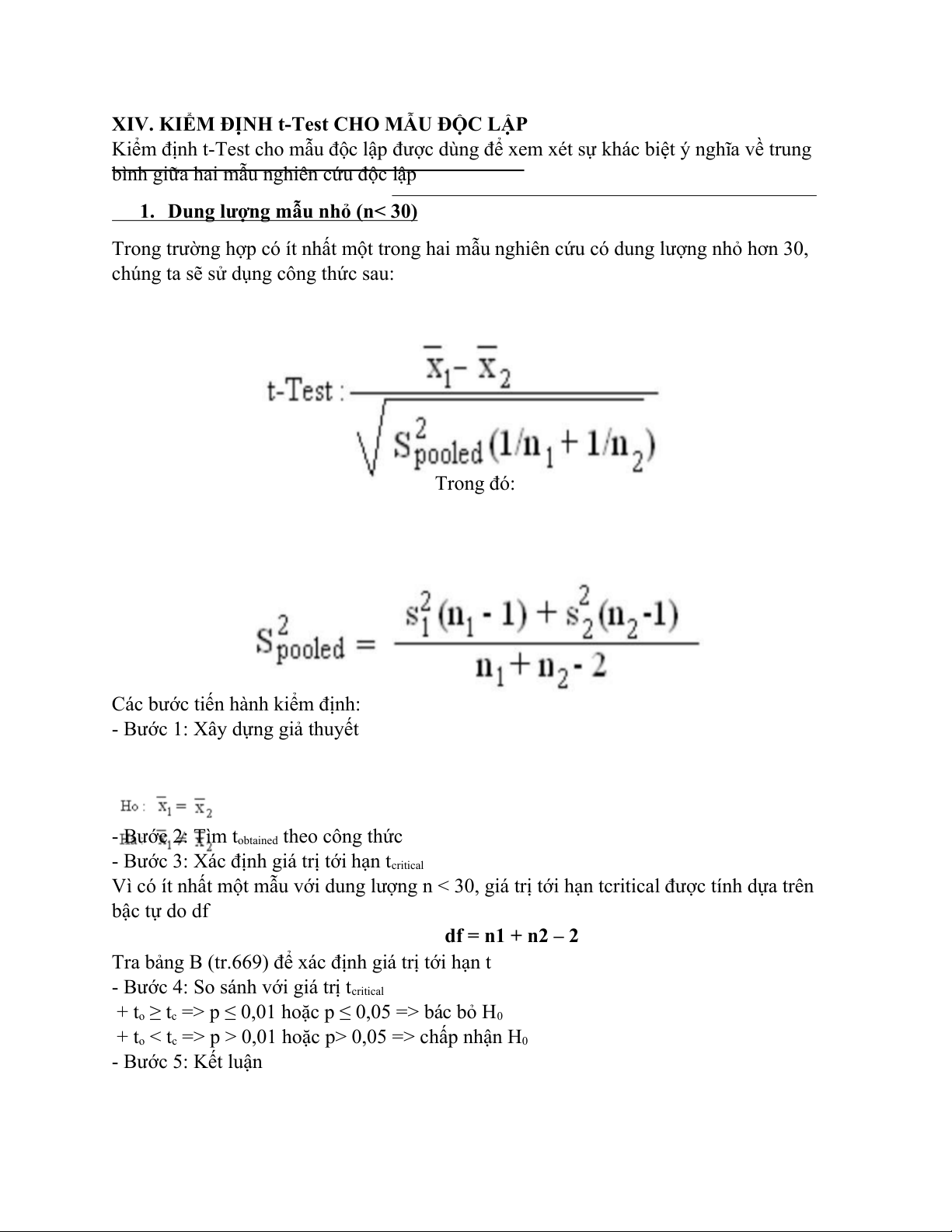 XIV. KIỂM ĐỊNH t-Test CHO MẪU ĐỘC LẬP