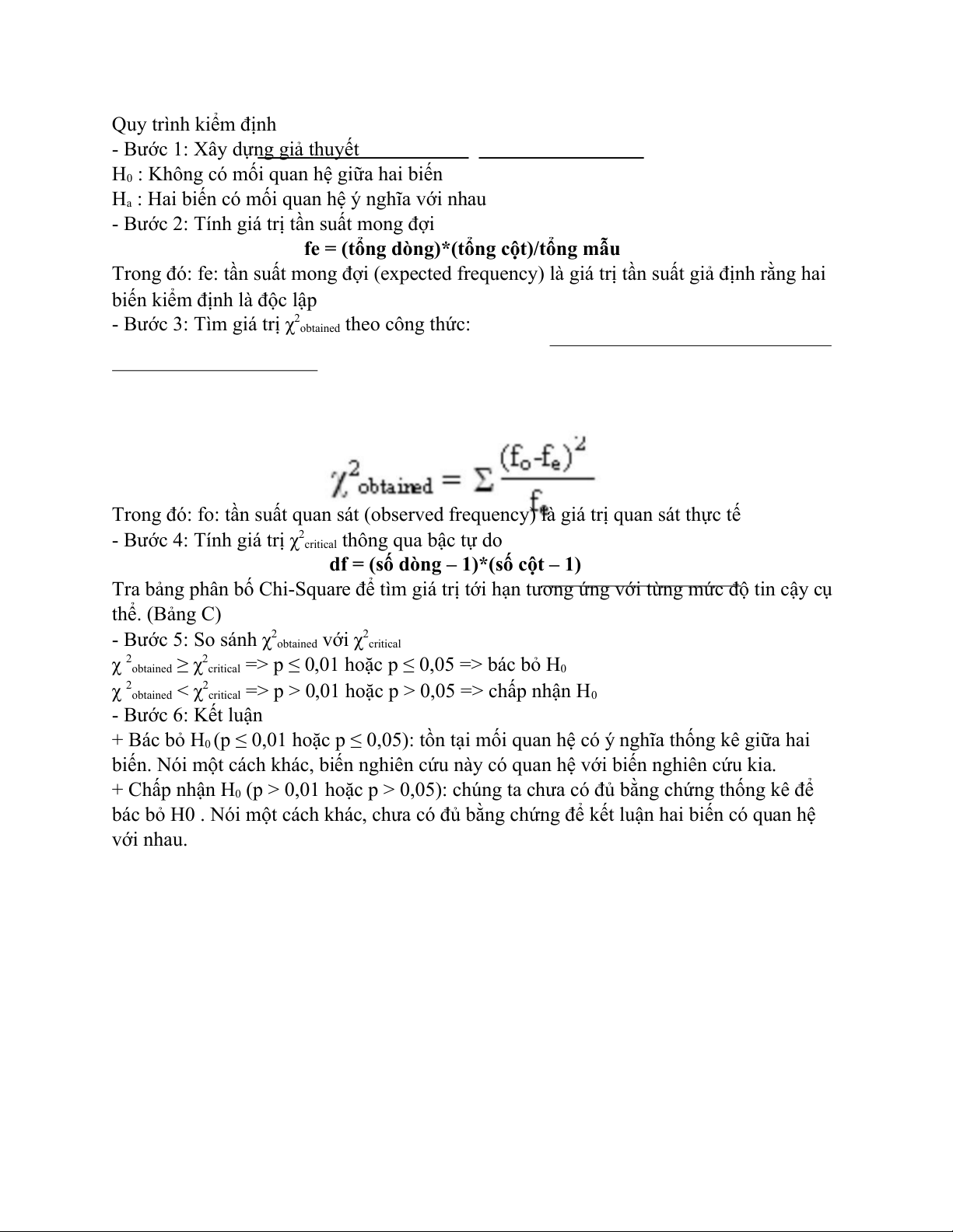 Trong đó: fe: tần suất mong đợi (expected frequency) là giá trị tần suất giả định rằng hai