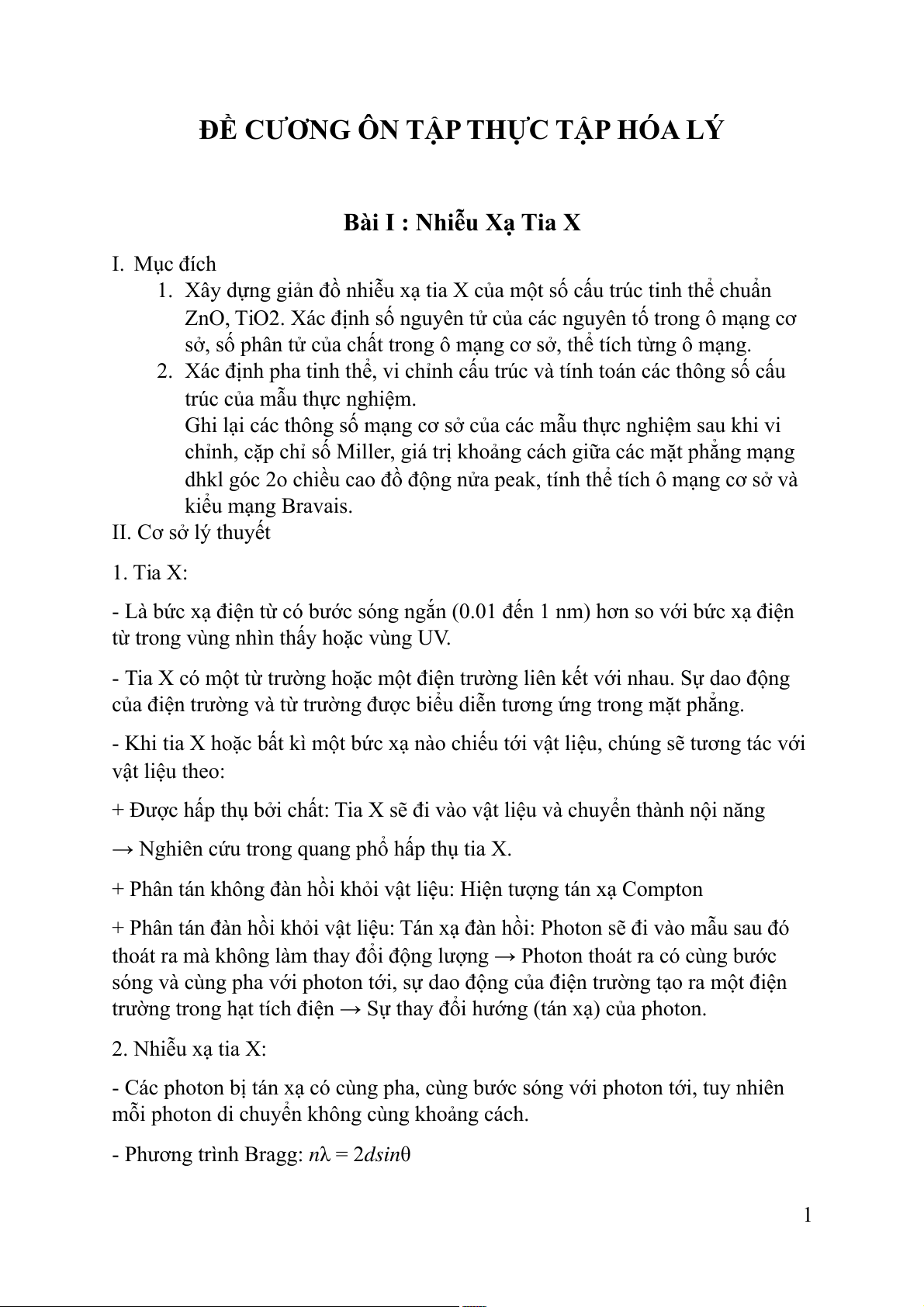 Bài I : Nhiễu Xạ Tia X I. Mục đích