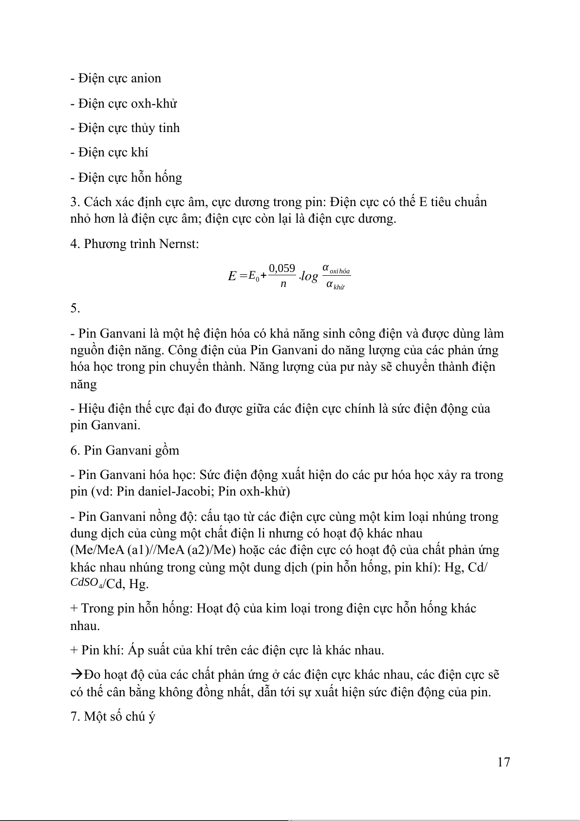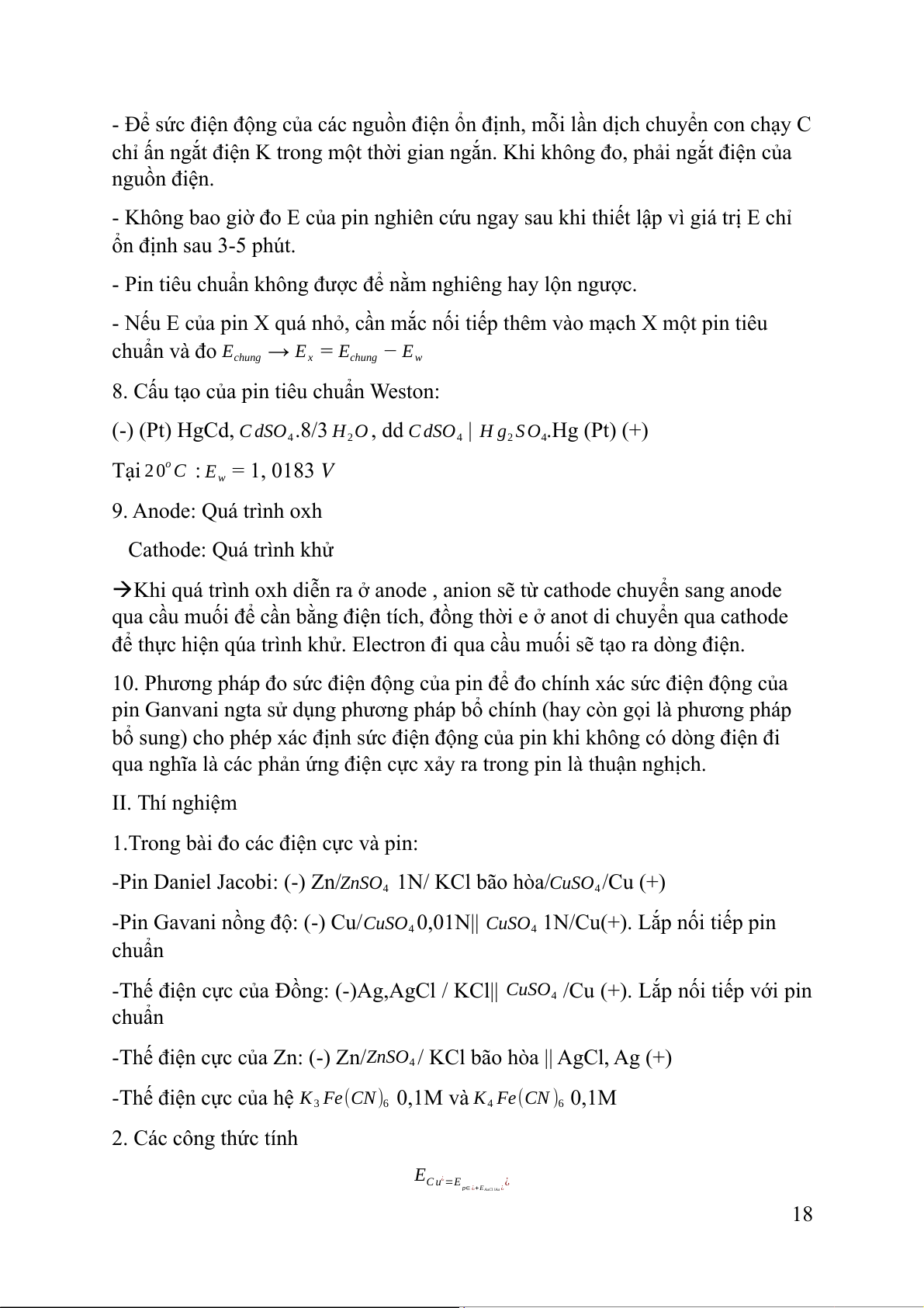 có thế cân bằng không đồng nhất, dẫn tới sự xuất hiện sức điện động của pin. 7. Một số chú ý 17