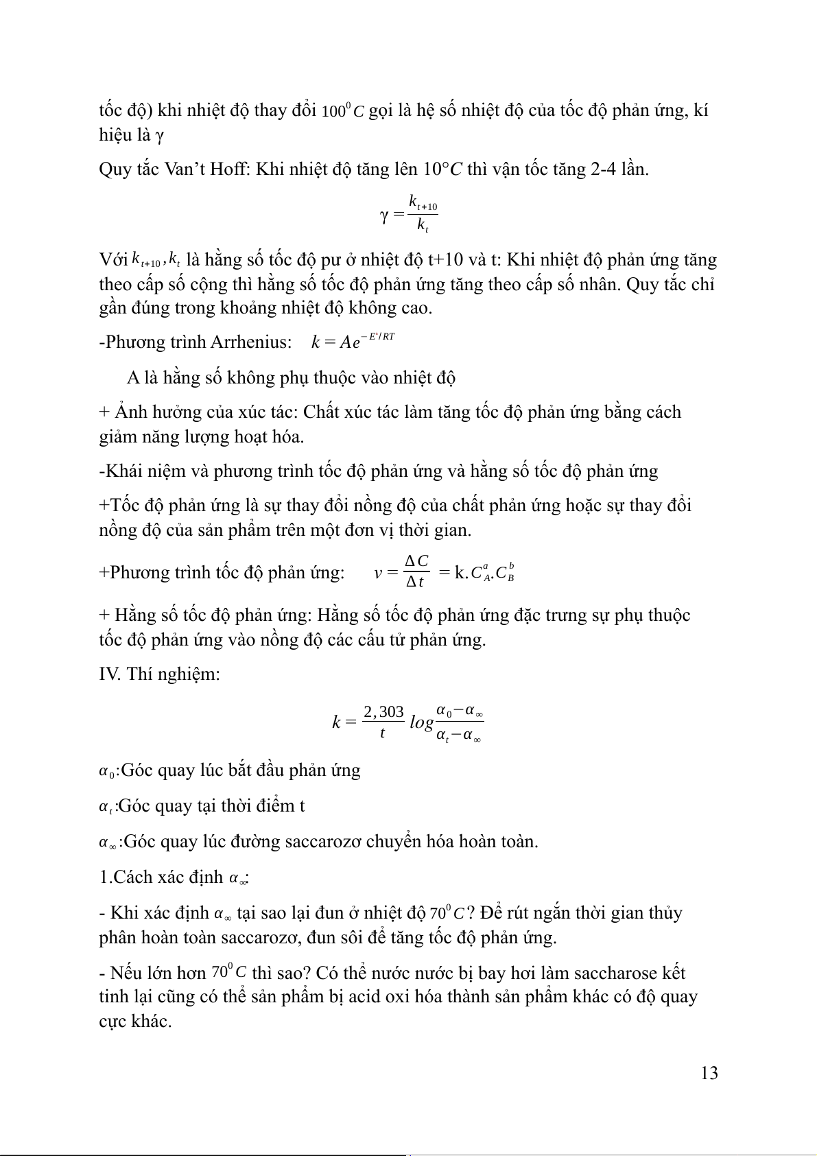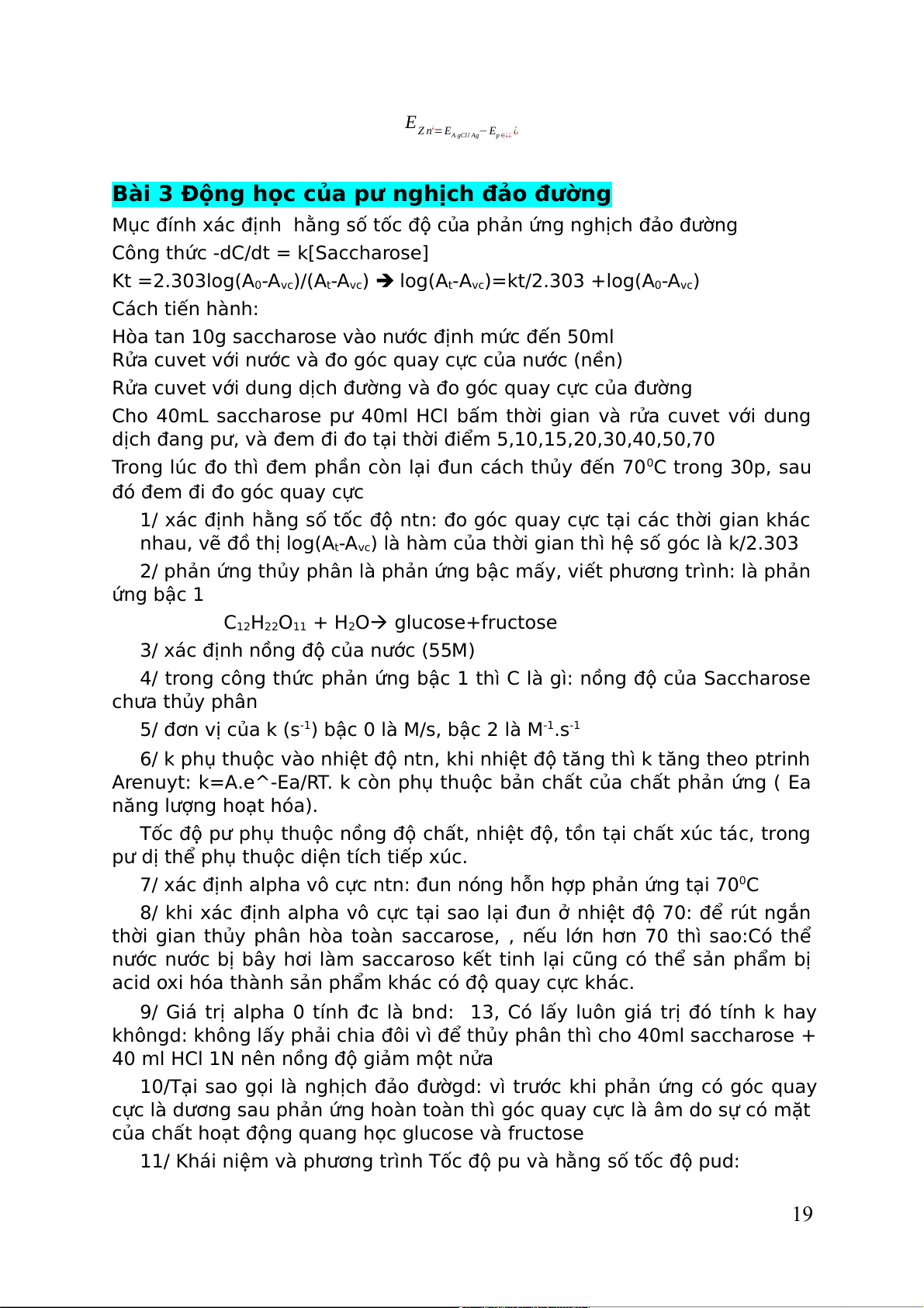 1/ xác định hằng số tốc độ ntn: đo góc quay cực tại các thời gian khác