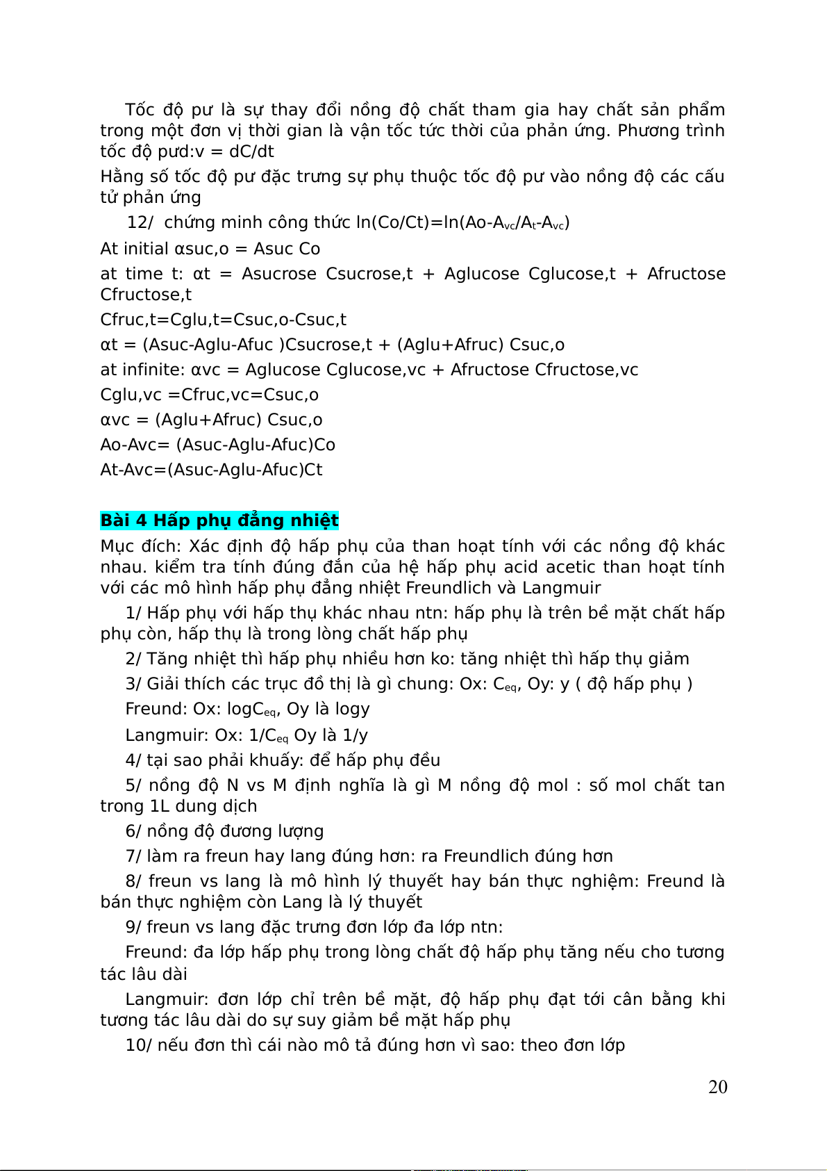 ĐỀ CƯƠNG ÔN TẬP THỰC TẬP HÓA LÝ