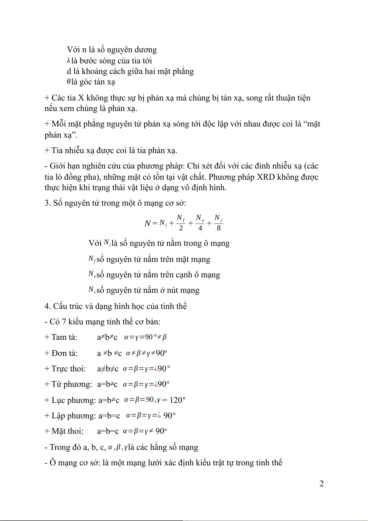 - Phương trình Bragg: λ = 2 𝑛 𝑑𝑠𝑖𝑛θ 1