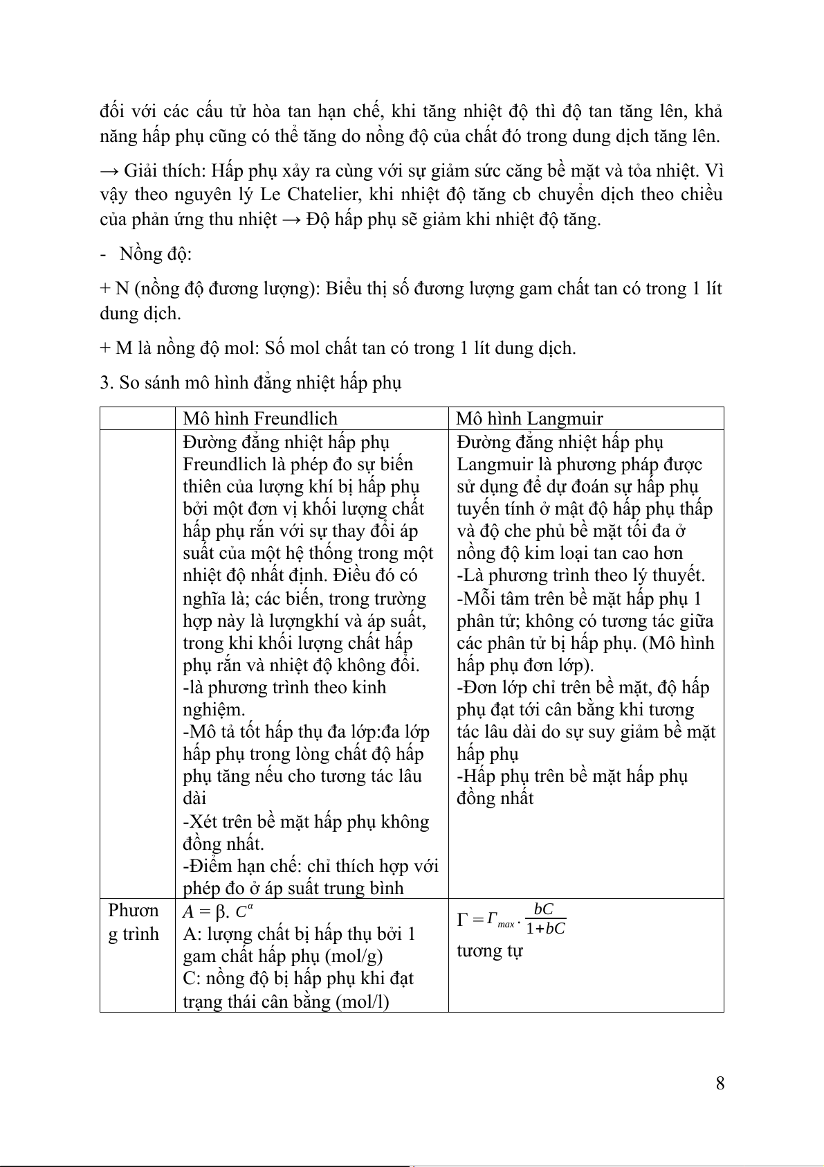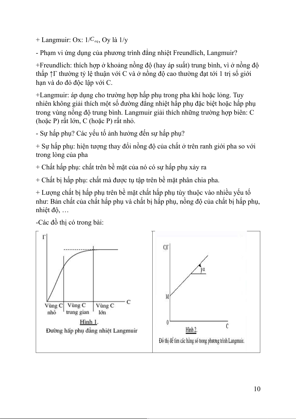 Langmuir: đơn lớp chỉ trên bề mặt, độ hấp phụ đạt tới cân bằng khi