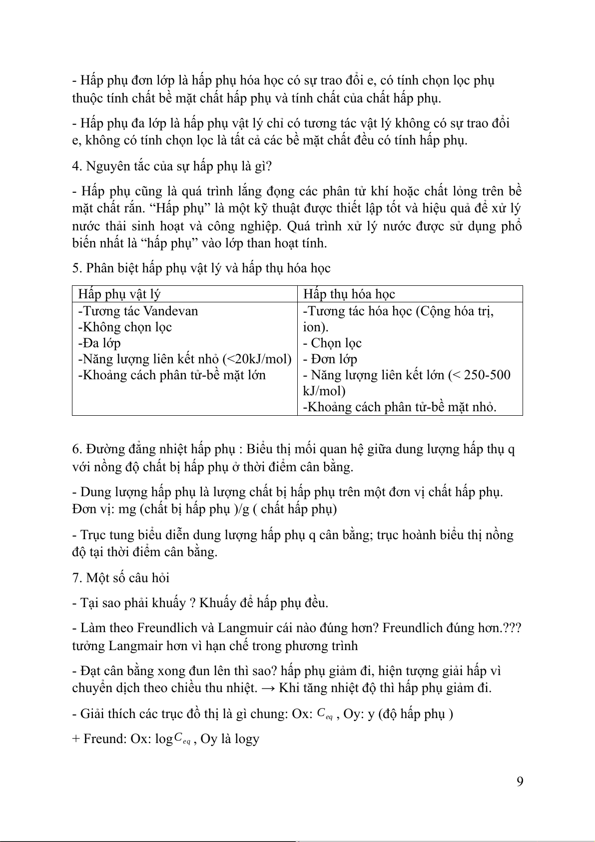 1/ Hấp phụ với hấp thụ khác nhau ntn: hấp phụ là trên bề mặt chất hấp